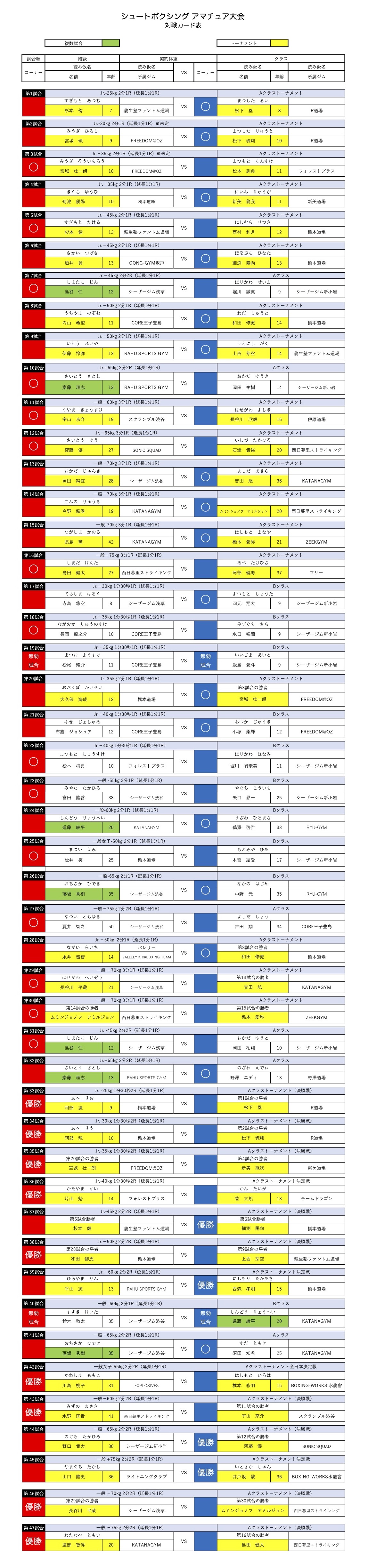 2022年12月18日(日)に開催した『「AMATEUR SHOOT BOXING 2022」〜全日本王者決定トーナメント&ワンマッチ大会〜』の大会結果は以下の通りです。