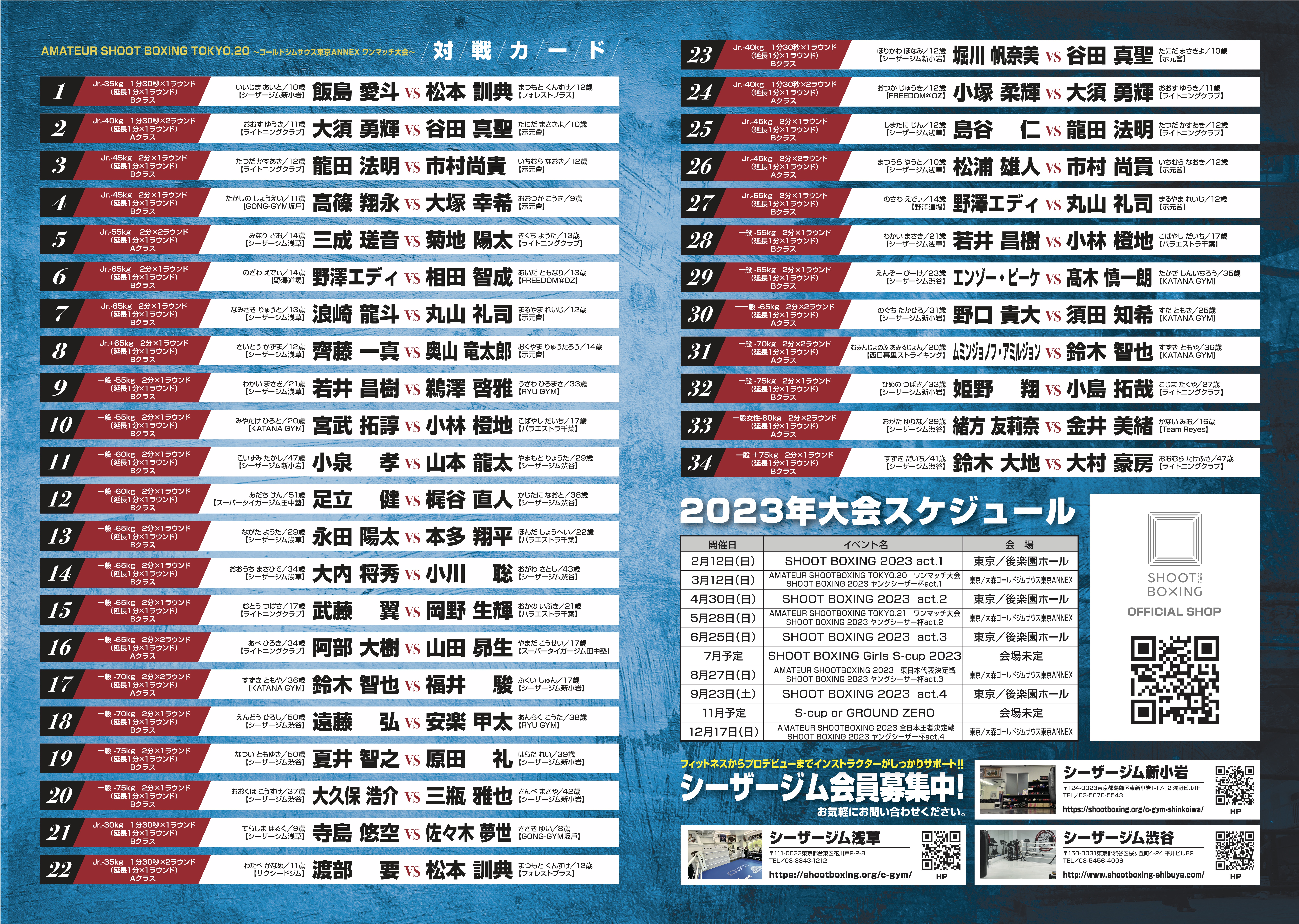 【全カード&試合順】2023.03.12「AMATEUR SHOOT BOXING TOKYO.20」
