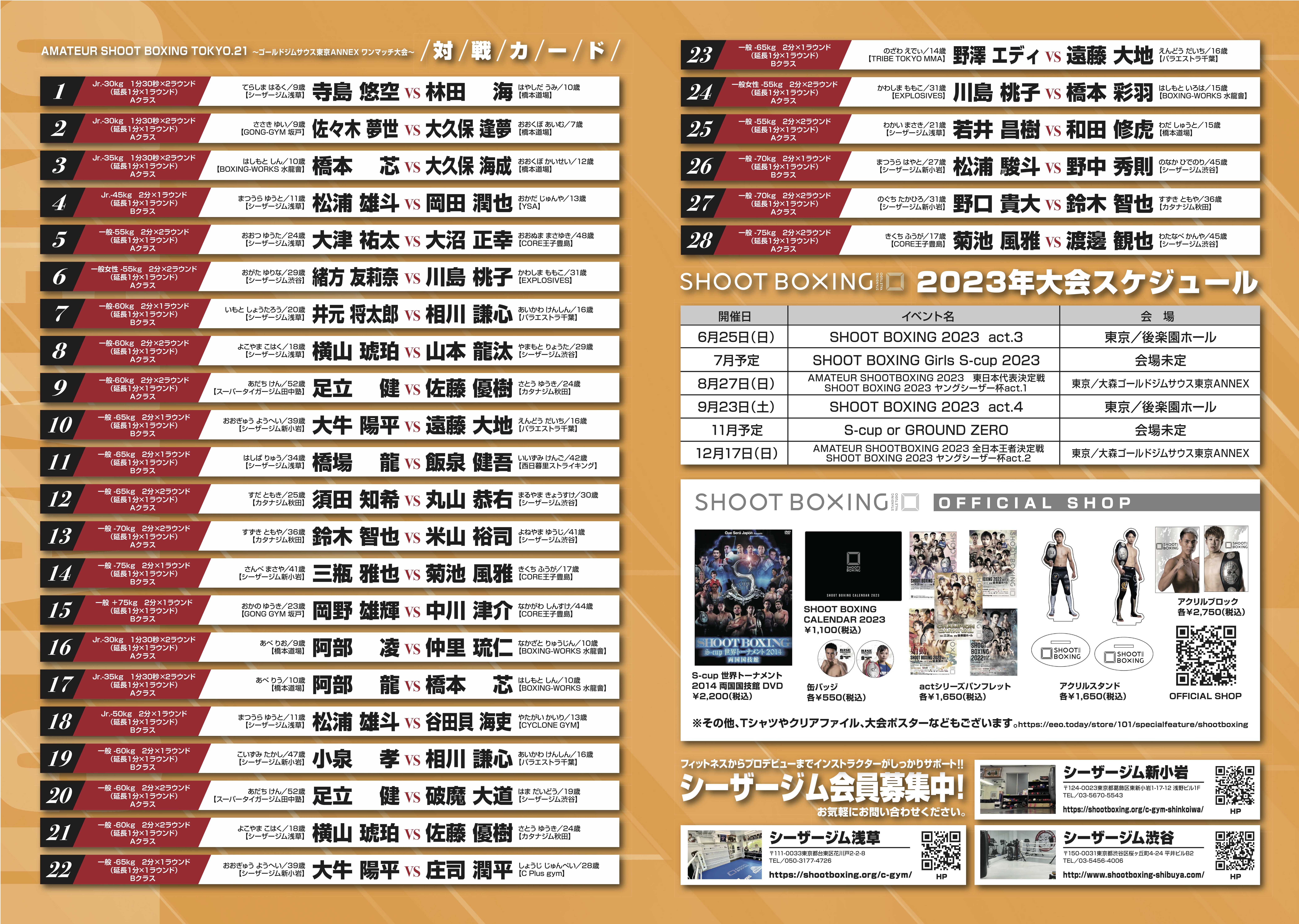 【全カード&試合順】2023.05.28「AMATEUR SHOOT BOXING TOKYO.21」