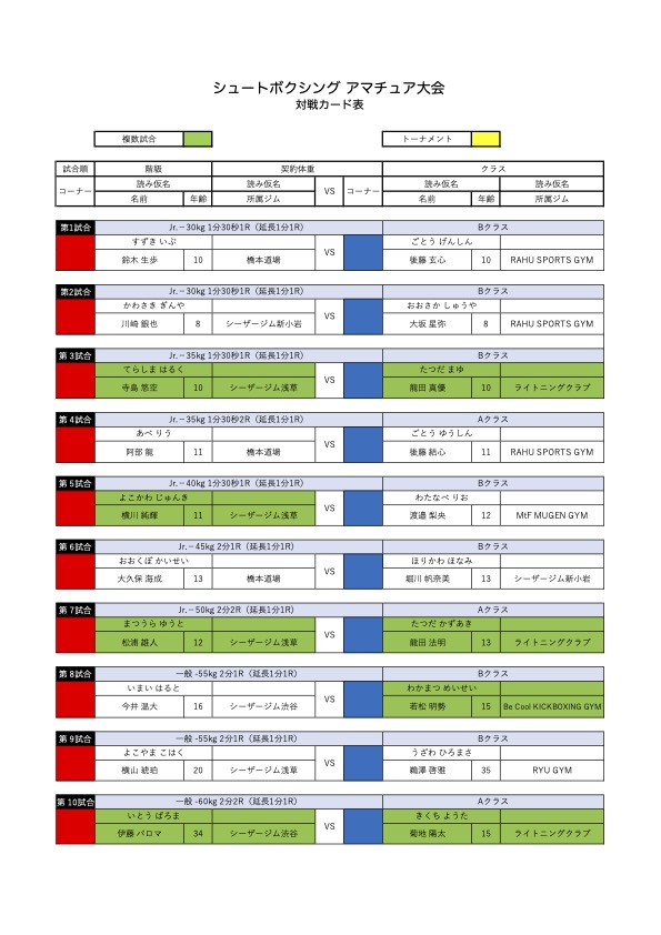 【全カード&試合順】2024.5.26 AMATEUR SHOOT BOXING TOKYO.24