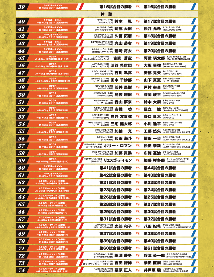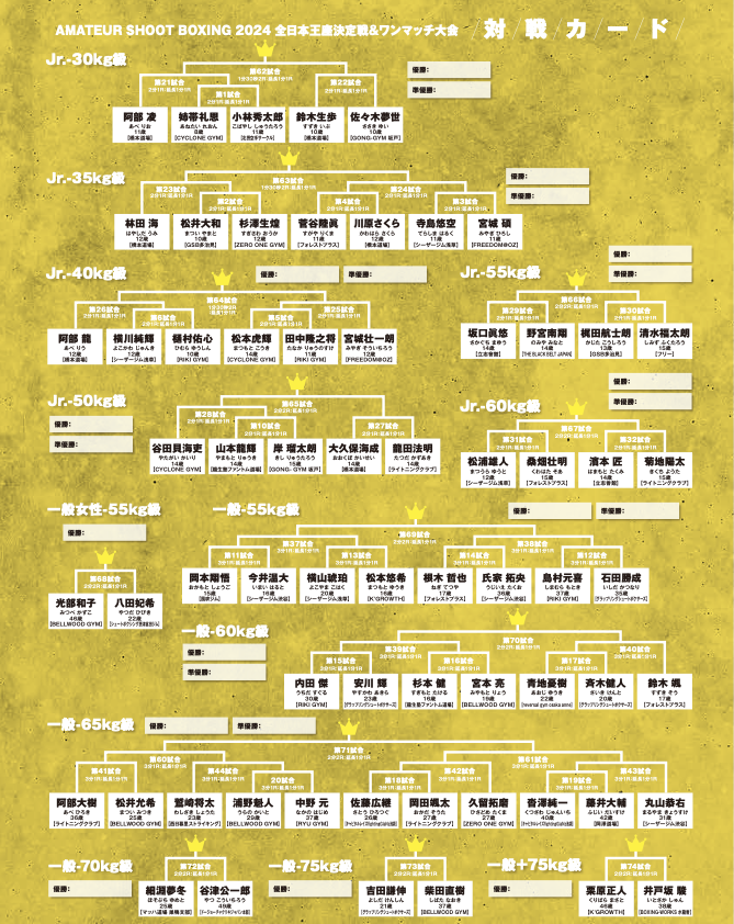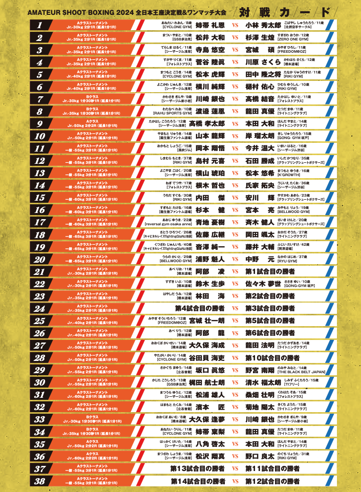 【全カード&試合順】AMATEUR SHOOT BOXING 2024 〜全日本王者決定戦&ワンマッチ大会〜