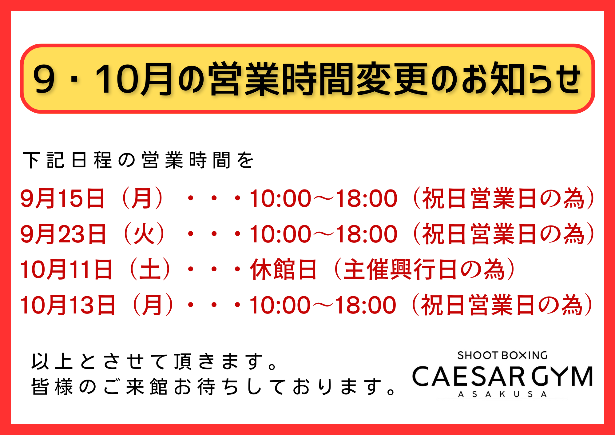 【🍁9・10月ジム営業時間のお知らせ🍁】