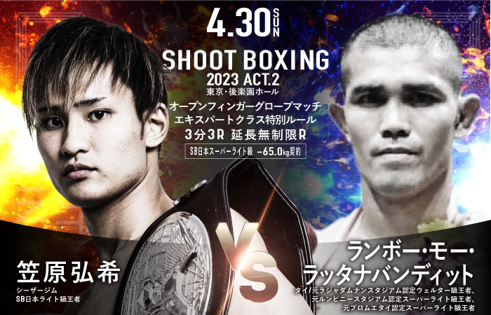 また、記者会見が12日(水)都内にて行われ、今大会よりオープンフィンガーグローブ(以下OFG)着用の試合を導入することが発表された。OFG着用の試合は、新たに追加カードとして発表された笠原弘希(シーザージム)vsランボー・モー・ラッタナバンディット(タイ)、坂本優起(シーザージム)vs遊笑(Y’s glow)の2試合となる。