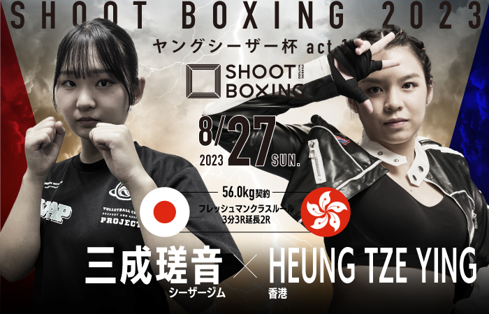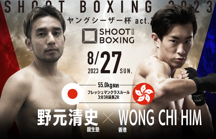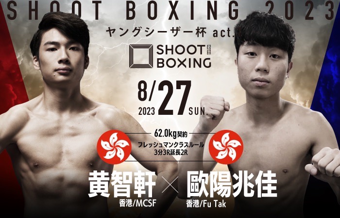 また、プロ2戦目となる長谷川平蔵(シーザージム)vs金ちゃん(K-Style)の一戦、SB香港スーパーライト級王座決定戦として向籽羲(=ヒュン・ツェイ・ヘイデン/香港/榮拳館)vs陳柏灝(=チャン・パク・ホ/香港/APEX)も決定。向籽羲は坂本優起を二度破っている向柏榮の息子で4月のシリーズ第二戦で基山幹太と激闘を繰り広げた。戦績は5戦4勝(1KO)1敗。対する陳柏灝は13戦7勝5敗の戦績を持つ。