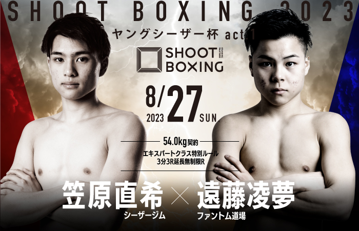 笠原直希(シーザージム)vs遠藤凌夢(ファントム道場)の注目の新鋭がメインで激突する。SB日本ライト級王者・笠原弘希、SB日本スーパーフェザー級王者・笠原友希を兄に持つ直希は二人と同じく小さい頃からシーザージムに通い、アマチュアではSB全国大会-45kg級で優勝。2022年4月の『RISE ELDORADO 2022』でプロデビューし、那須川天心の第、那須川龍心に敗れはしたが、接戦を繰り広げた。前戦となった6月のSHU戦では初のヒジ打ちありルールの試合に挑戦し判定勝ちしている。戦績は6戦4勝(1KO)2敗。対する遠藤は、植山征紀が所属するファントム道場の期待の新星。植山と同じく強打を武器にアマチュア時代から注目を集め、昨年4月に星拓海戦でプロデビューし、3戦2勝(1KO)1敗。
