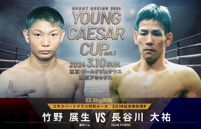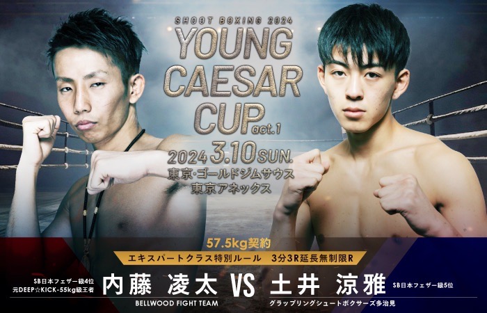 2024年3月10日(日)東京・ゴールドジムサウス東京ANNEXで開催される『SHOOT BOXING 2024 ヤングシーザー杯 act.1』の主要対戦カードが発表された。