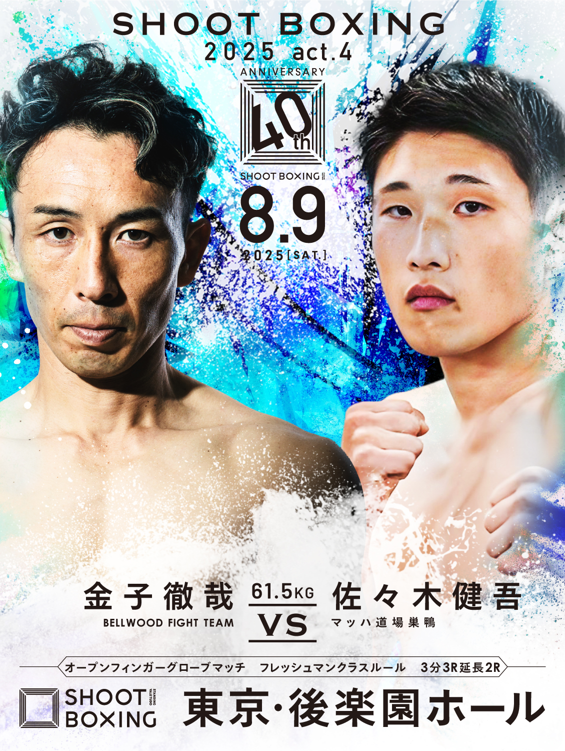 SHOOT BOXING 40周年イヤーを象徴する一大決戦が後楽園ホールで開催。4階級制覇を狙う笠原弘希が、SB日本スーパーライト級王者・イモト・ボルケーノに挑む頂上決戦を筆頭に、SB最強ツインズ・山田ツインズやRISE王者・安本晴翔が、ムエタイ強豪勢との国際戦に挑む。OFGルール、国内注目カードも揃い、SBの進化と激闘が詰まった真夏の激戦をお見逃しなく!