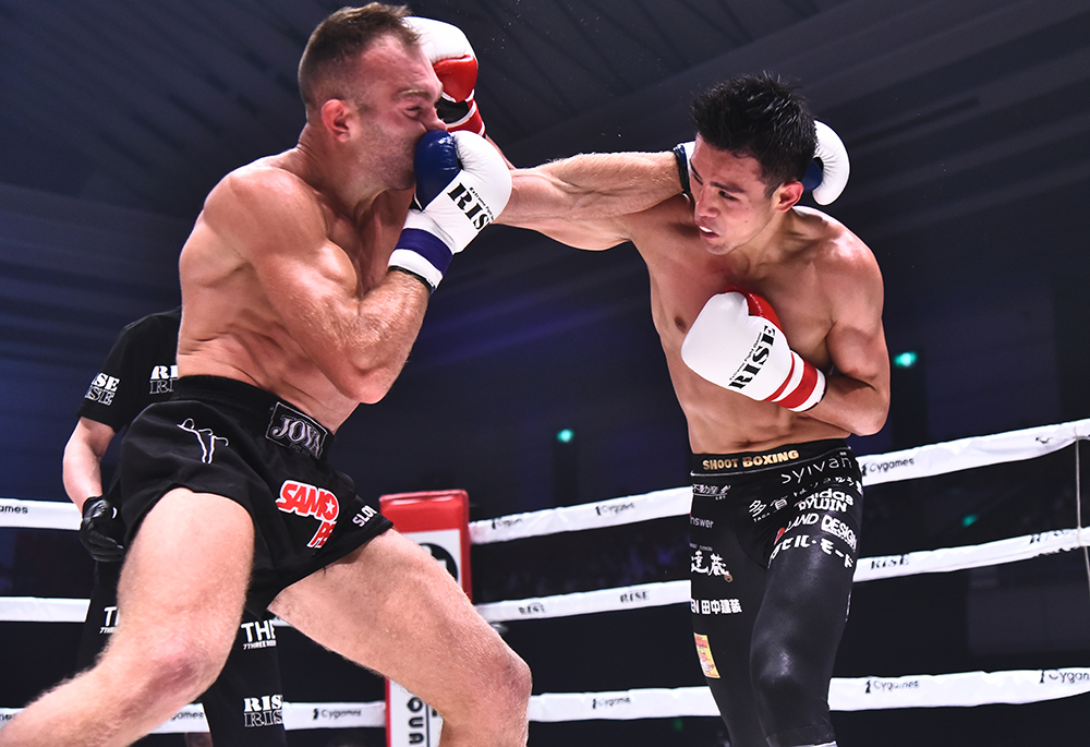 スロベニアのサモ・ぺティと対戦した海人は1Rから多彩な技で主導権を握る。2Rには海人がカーフキックで削りヒット数で上回るが、ぺティは徐々にプレスを強めて手数で追い込む。鼻血を出す海人は3Rに猛攻撃を受けて後退するも反撃し本戦はイーブン。延長戦は海人は右ストレートをヒットさせる場面もあり判定勝ちした。マイクを握った海人は「今日の試合で偉そうなことを言えません。でも僕が目指すものは、シュートボクシングを最強にして、RISEも最強ににして、日本の格闘家が世界一やと言ってもらえるように、この階級では自分が世界を取りに行きます」と改めて世界最強を目指すと宣言した。
