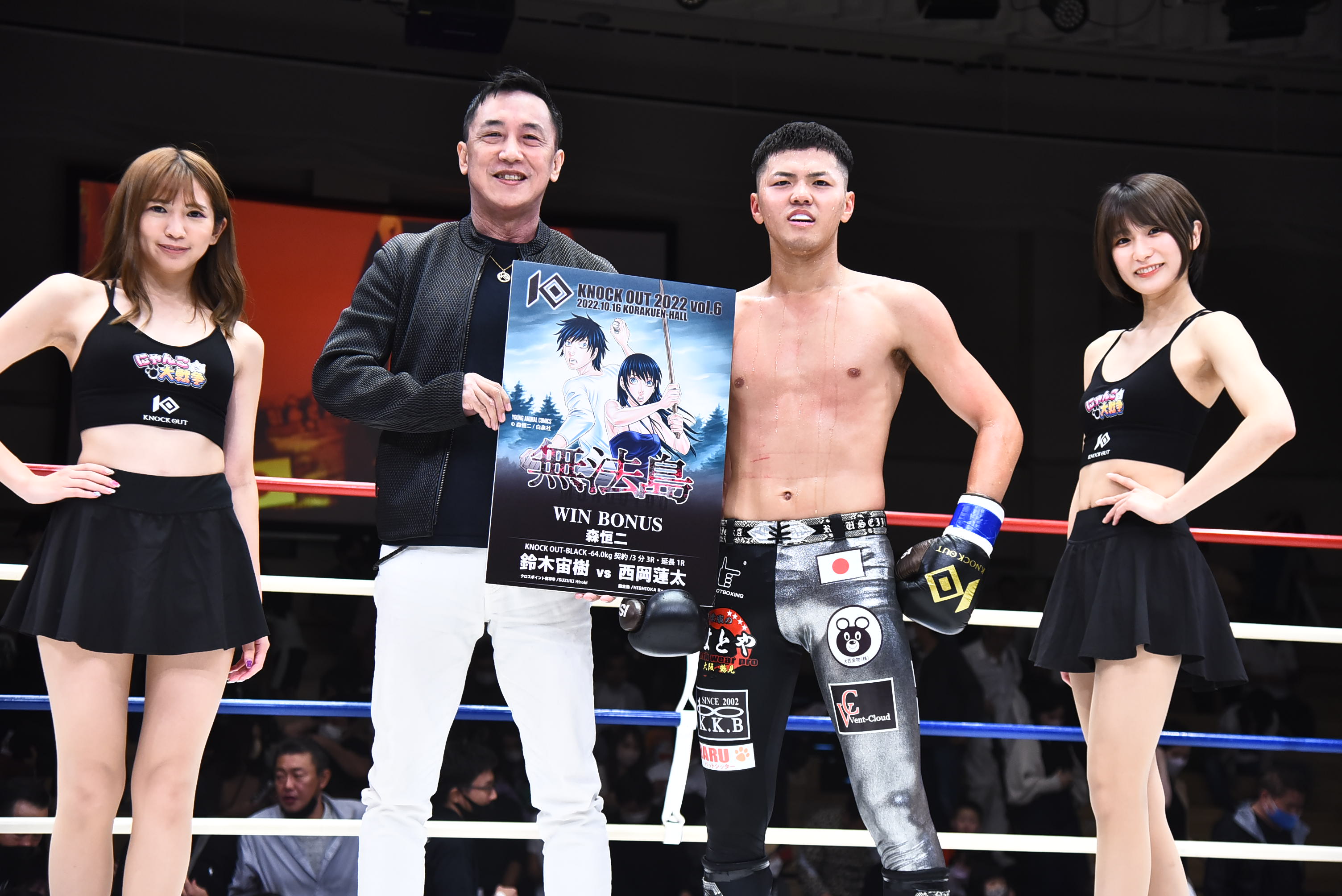 2022年10月16日(日)東京・後楽園ホールで開催された『KNOCK OUT 2022 vol.6』のメインイベント(-64.0kg契約)に前SB日本ライト級王者・西岡蓮太(龍生塾)が参戦、元REBELS60kg王者で13戦13勝(8KO)無敗の鈴木宙樹(クロスポイント吉祥寺)を相手に復活の勝利を挙げた。