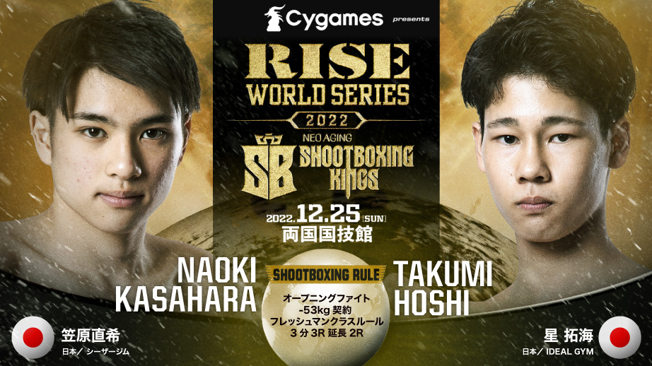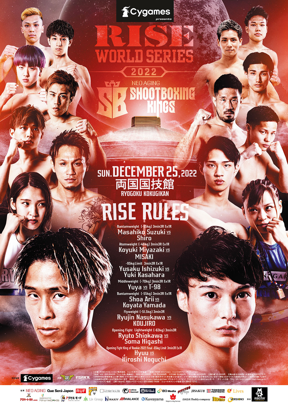 2022年12月25日(日)東京・両国国技館にて開催される『Cygames presents RISE WORLD SERIES / SHOOTBOXING-KINGS 2022』の全対戦カードの試合順が発表された。