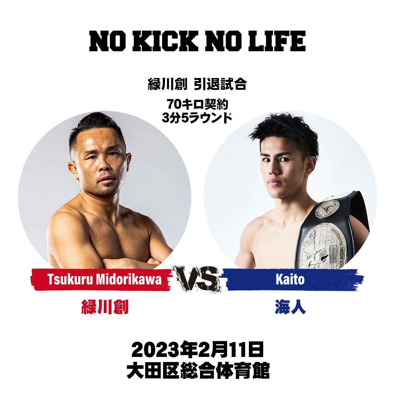 2023年2月11日(土・祝)東京・大田区総合体育館で開催される『NO KICK NO LIFE』にS-cup世界トーナメント2018王者・海人(TEAM F.O.D)が参戦、今大会での引退を発表している緑川創(RIKIX)の最後の対戦相手を務めることが決定した。