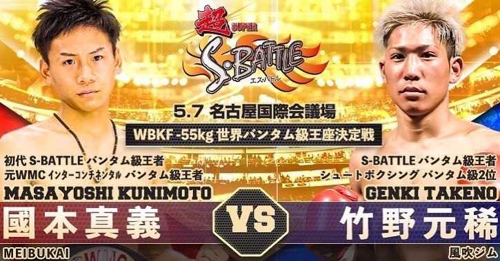 2023年5月7日(日)愛知・名古屋国際会議場イベントホールで開催される『超S-BATTLE』にSB日本スーパーバンタム級2位・竹野元稀(風吹ジム)が参戦、WBKF-55kg世界バンタム級タイトルに挑戦することが決定した。