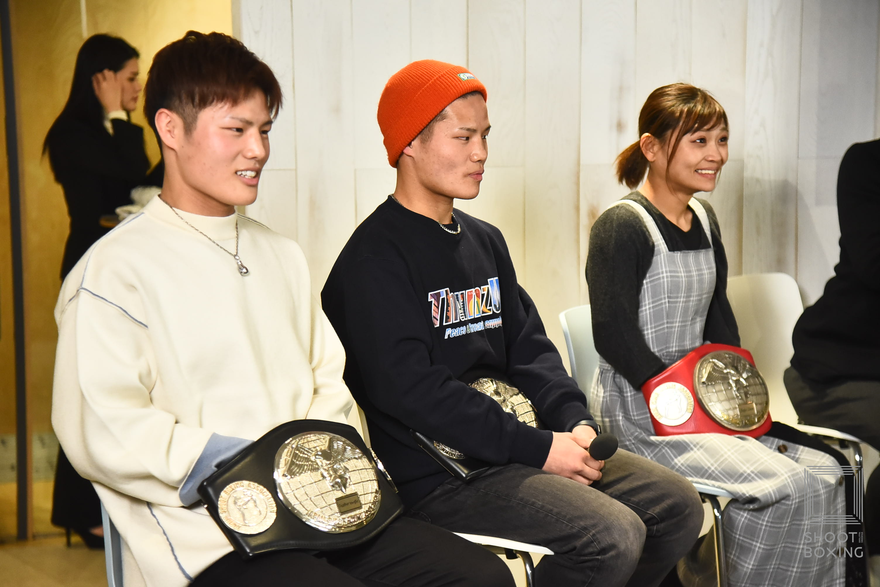 抽選で当選した35組70名のファンが集まる中、4日前の『SHOOT BOXING 2023 シリーズ Final -Start towards 40th anniversary-』の試合映像が流され、メインイベントでマサロ・グランダーに1RKO勝ちした海人は「もっと相手は様子を見て来ると思ったのですが、ヒザも危なかった。前回(ティジャニ・)ベスタティ選手に負けて色々と勉強させてもらったので、ベスタティ選手が使っていた技、距離感とか自分の中ではもっと試しかったものがあるのでもっと時間をかけたったのですが、結果として勝てて良かったです」と振り返る。