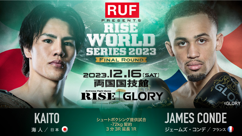 海人は当初、“バダ・ハリ2世”と評される元Enfusion王者モハメド・ジャラヤ(モロッコ)と対戦する予定だったが、ジャラヤが諸事情により入国が出来なくなったために欠場。代替選手としてISKAヨーロッパ ライトミドル級王者ジェームズ・コンデ(フランス)が参戦する。コンデはローキックを武器に10戦10勝(5KO)の無敗戦績を持ち、GLORY期待の新生。海人がティジャニ・ベスタティの持つGLORY王座に挑戦した今年8月の『GLORY 87』に参戦しジョナサン・マエゾに判定勝利を収めている。