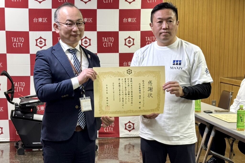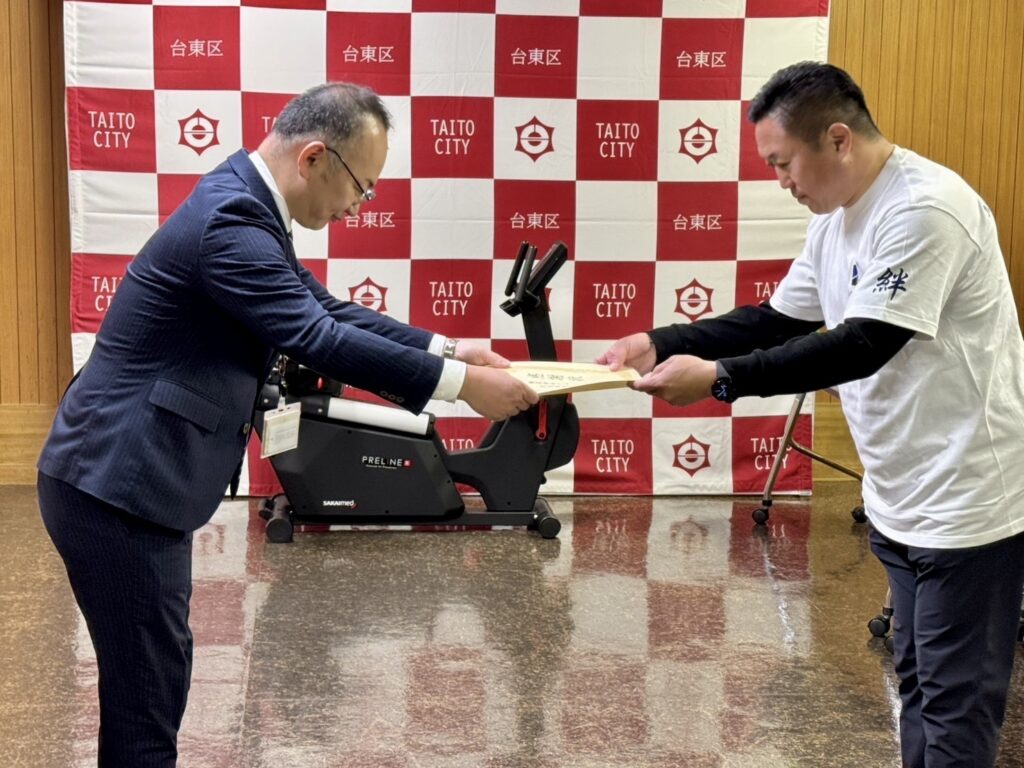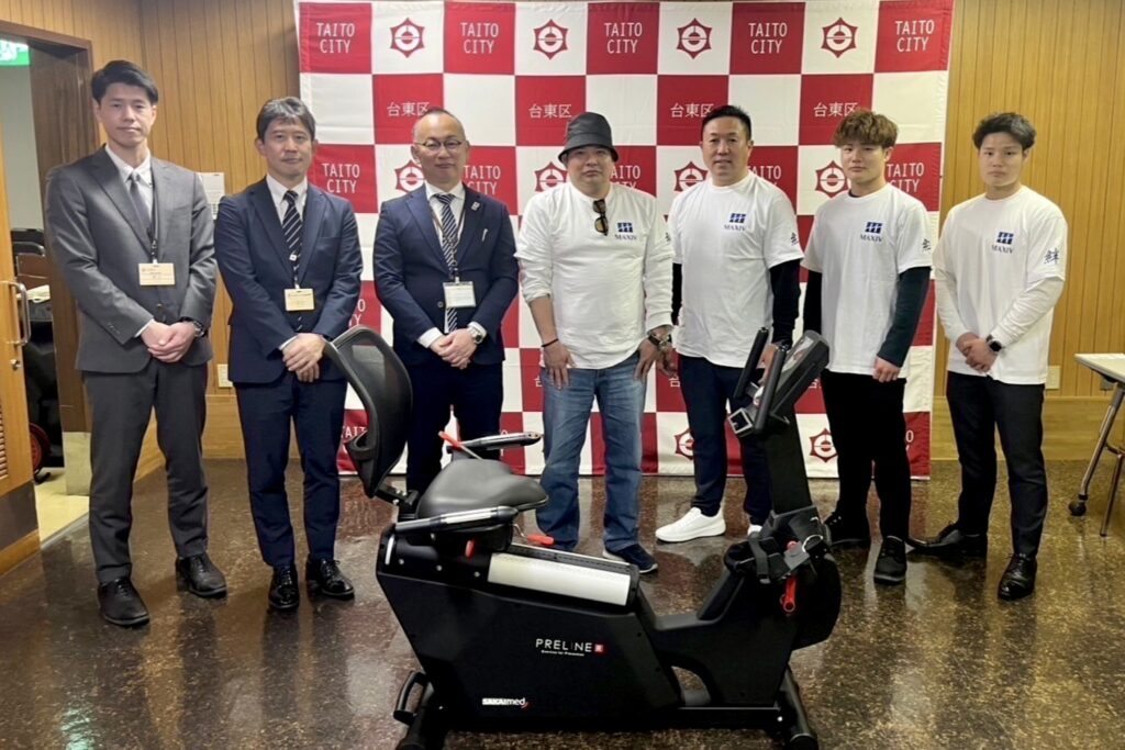 2025年2月27日(木)東京・台東区松が谷福祉会館に、SB日本フェザー級王者・山田彪太朗とSB日本スーパーバンタム級王者・山田虎矢太の山田ツインズ(ともにシーザージム)、シーザーインターナショナル・緒形健一代表、スポンサー企業のMAXIV(マキシヴ)が訪問、寄附金及びエクササイズバイク贈呈式を行った。