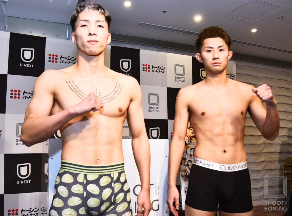 メインイベント、SB日本フェザー級(57.5kg契約)タイトルマッチで対戦する