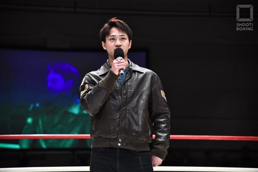 第9試合が終わっての休憩後、リングインした笠原は「先日はたくさんの応援ありがとうございました。相手は強い選手だったのですが、いい勝ち方ができて、皆さんはさらに準決勝が楽しみになったんじゃないかなと思います。次の相手はRISEのチャンピオンなのでめちゃくちゃ強いのですが、僕はSBのチャンピオンなので絶対に勝ってきます! 一回戦前もこうやってあいさつさせてもらって今回で2回目です。準決勝も勝って、決勝戦も勝って、あと2回あいさつするので楽しみにしてください。たくさんの応援よろしくお願いします」とあいさつした。