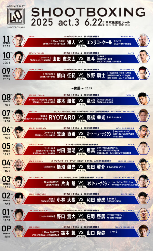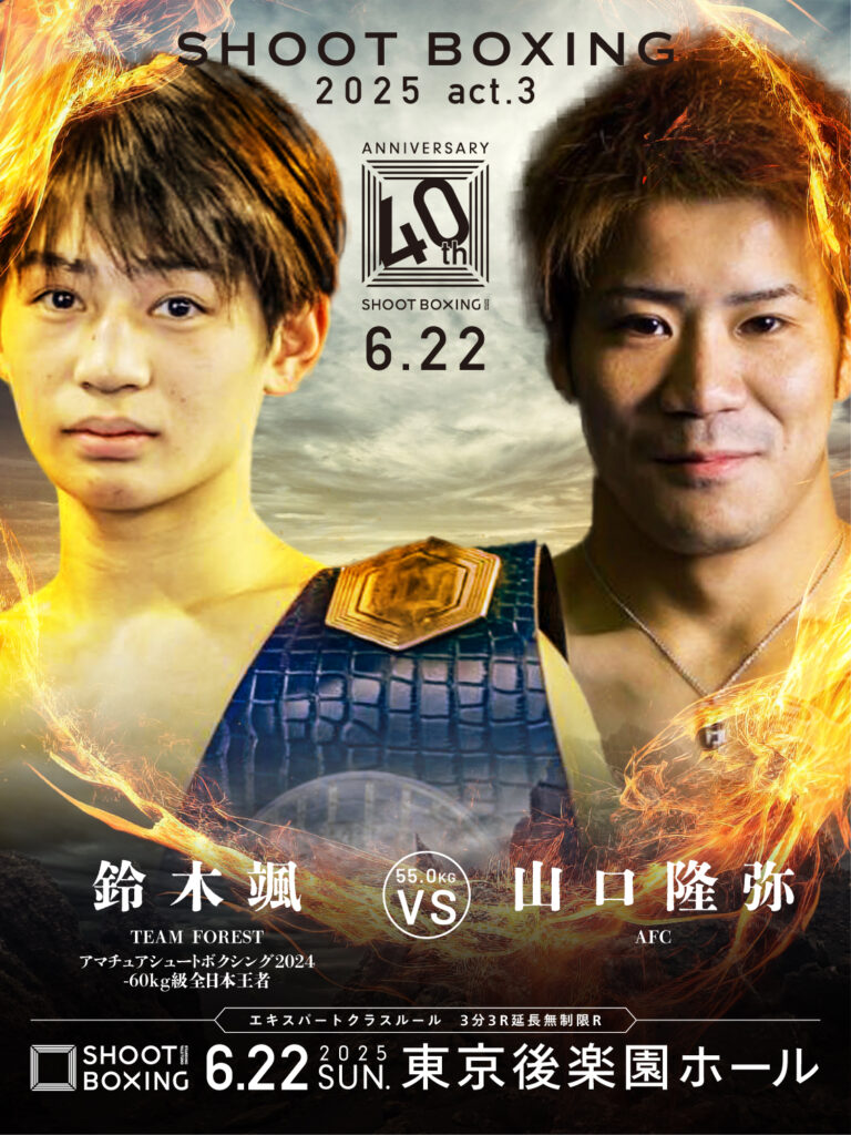 2025年6月22日(日)東京・後楽園ホールで開催される『SHOOT BOXING 2025 act.3』の最終追加対戦カードが発表された。
