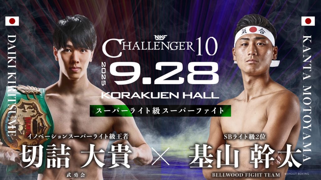 2025年9月28日(日)東京・後楽園ホールで開催される『NJKF×CHALLENGER 10』に出場予定だったSB日本ライト級1位・ポッシブルK(K’GROWTH)が怪我により欠場、同級2位・基山幹太(BELLWOOD FIGHT TEAM)が代替出場することが決定した。