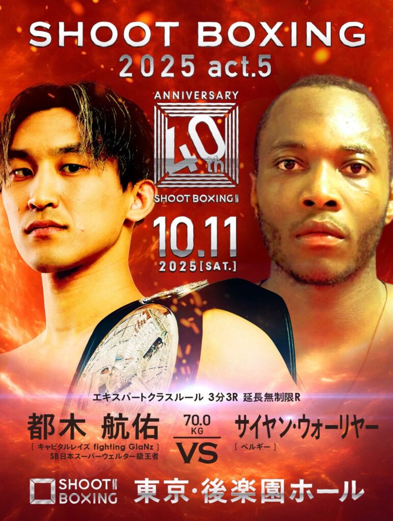 SB日本スーパーウェルター級王者・都木航佑(キャピタルレイズ fighting GlaNz)がサイヤン・ウォーリヤー(ベルギー)と激突する。