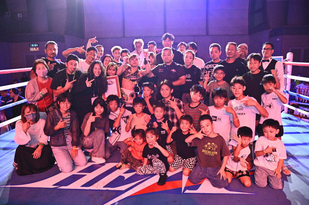 「私はとてもメンタルが弱いので19の時に自殺をしようとしたことがありました。その時に今ここにいる森田さんに止めていただいて、そこから私は森田さんはメンタルを支えていただいている心のお父ちゃんだと思っています。世界王者になるまでずっと父ちゃんでいてくださりました。本当にありがとうございます。今日も直前まで心の声をかけてくれていました。そして大石(陽一郎)会長は名古屋では知らない人がいないくらい名門ジムの会長で、OISHI GYMに私を出稽古という形にも関わらずセコンドについてくださいました。ずっとミットを持ってくださり、私のカーフやインローを受け止めててくださって、格闘技のお父ちゃんだと思っています。本当にありがとうございます。そしてお母さん、心の弱い私を何度も絶対に見放すことなく20歳超えても30間近になっても赤ちゃんのように愛でて励ましてくれて私は強くなってきました。本当にたくさんの支えがあって世界王者になることが出来ました。本当にみんなのおかげでここに私がいます。本当に大好きです。ありがとうございます」