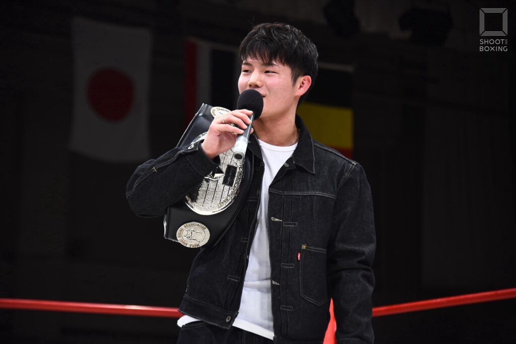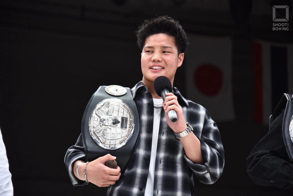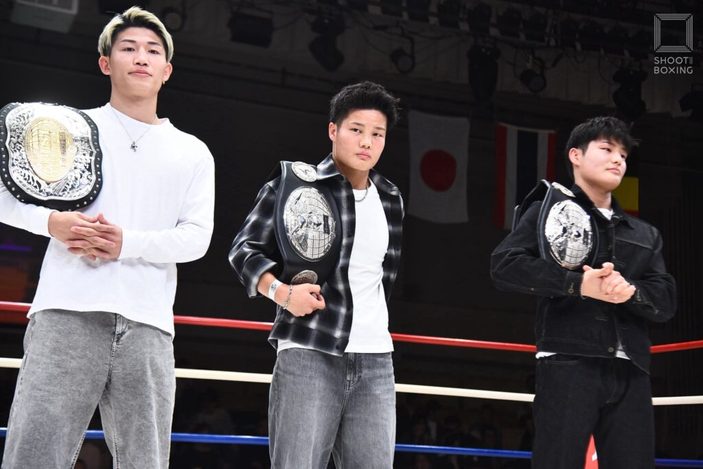 リングに上がった彪太朗は「世界一になるために14年間頑張ってきて、いよいよ達成する日が来たので、皆さん期待と注目をよろしくお願いします」、虎矢太は「僕もフェザー級に上げて、勝ったり負けたりあったのですが、S-cupトーナメント出場が確定しました。今立っている3選手は全員強いのですが、僕が必ず世界一になるので、皆さん、熱い応援をよろしくお願いします」と山田ツインズは揃って世界一になると宣言。