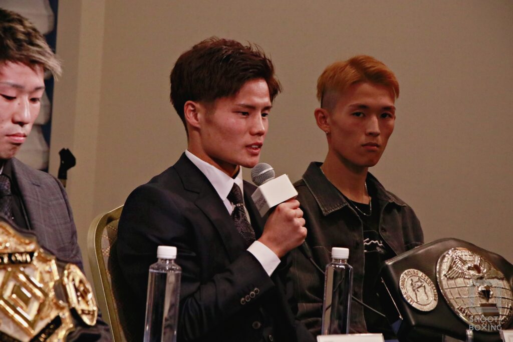 会見に出席した山田ツインズ兄の彪太朗は「泣いても笑っても明日、世界一強い男が決まります。最後に立っているのは山田彪太朗です」、弟・虎矢太は「遂にS-cupがきます。ベルトを目の前にしてさらに気合が入りました。明日は必ずS-cupチャンピオンになって格闘技人生を変えようと思います」、古木は「明日は優勝しか考えてないです。熱い試合をします」、安本は「明日は初めてのワンデートーナメントなんですけど、しっかり優勝して僕がS-cupのベルトを持って帰ろうと思います」、川上は「明日は山田ツインズと安本選手が注目されているので、注目されてない僕がしっかりチャンピオンになろうかなと思います」、魁斗は「対戦相手は計量オーバーですが、しっかり計量クリアーしてくれると思うので、明日はリザーブファイトですが、本戦に負けないようにバチバチにいきたいと思います」、サタントンは「今回は全力で練習してきたので全力で大会に臨みたいと思います」、アブサロンは「長旅をして来日したので、もちろん自分がいい結果を出しにきました。対戦相手を見て、明日の試合が楽しみになりました。チャンピオンになる姿を見せたいと思います」とそれぞれが意気込みを語った。