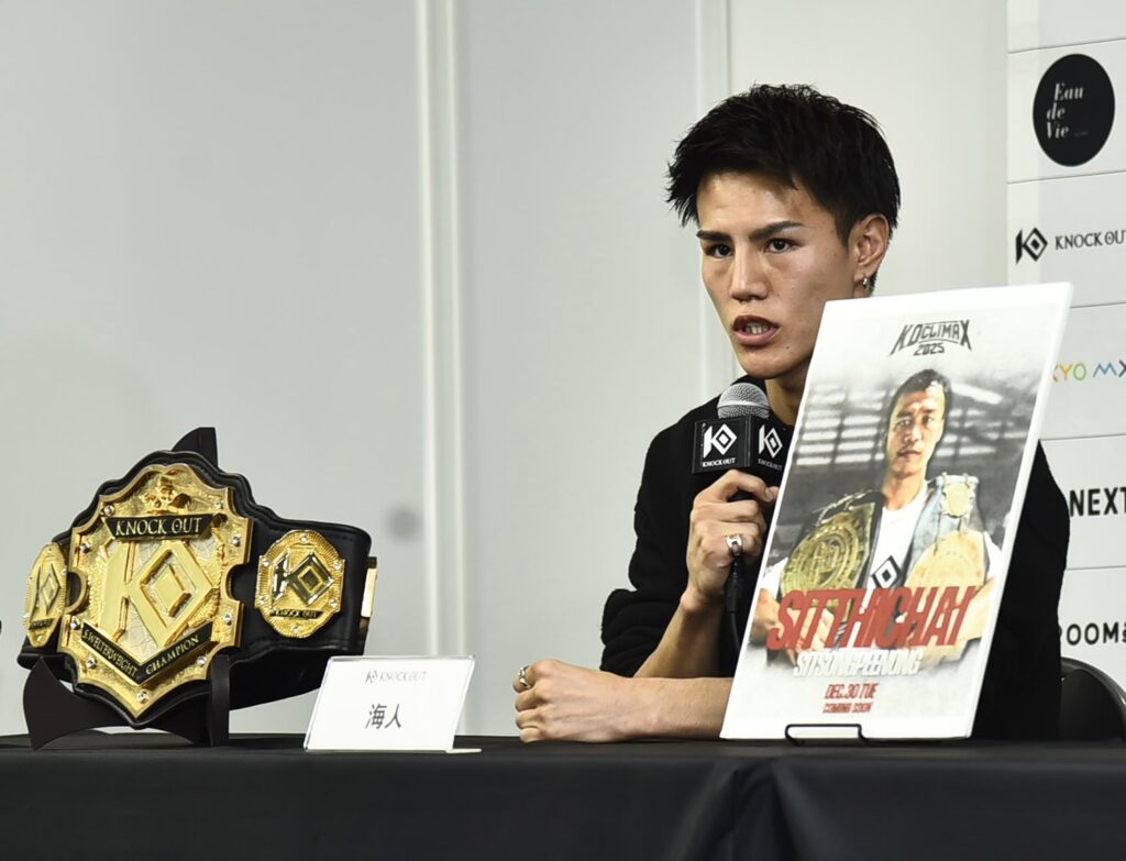 2025年12月30日(火)東京・国立代々木競技場 第二体育館で開催される『KNOCK OUT.60 ~K.O CLIMAX 2025~』の記者会見が12月3日(火)都内にて行われ、SB世界スーパーウェルター級王者・海人(TEAM FOD)の参戦が発表された。