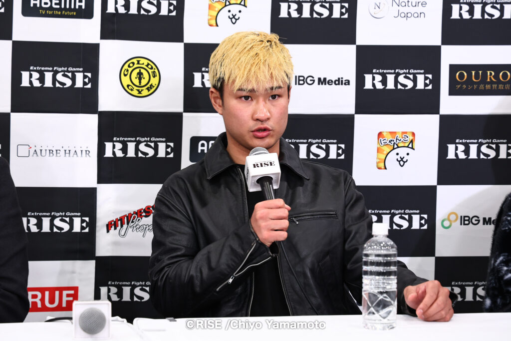 対戦相手のファイターとしての印象を聞かれると「凄い器用でファイトIQが高い選手」と評価。ここで勝てばRISEの65kgのツートップを倒すことになるが、「僕はそんなふうには思っていません。僕が見ているのは世界なので。しっかり決勝戦に上がって勝って、このトーナメントを制覇するところを見ています」と優勝しか見てないとする。