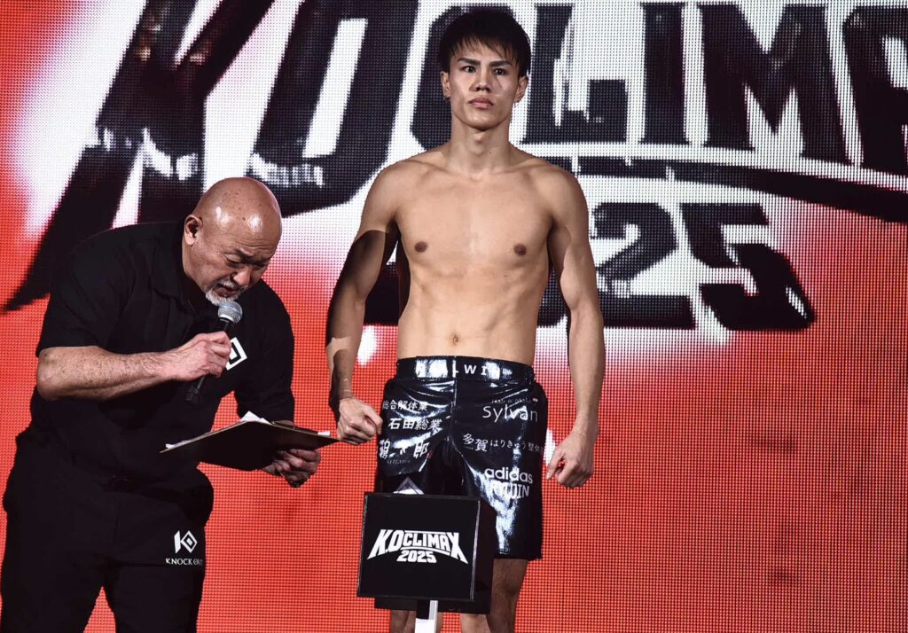 2025年12月30日(火)東京・国立代々木競技場第二体育館で開催される『KNOCK OUT.60 ~K.O CLIMAX 2025~』の前日計量・会見が29日(月)同所にて行われ、セミファイナルのKNOCK OUT-BLACKスーパーウェルター級タイトルマッチで初防衛戦に臨む王者・海人(TEAM F.O.D)は69.05kgで計量をパスした。挑戦者の シッティチャイ・シッソンピーノン(タイ)は70.0kgジャストでクリアー。