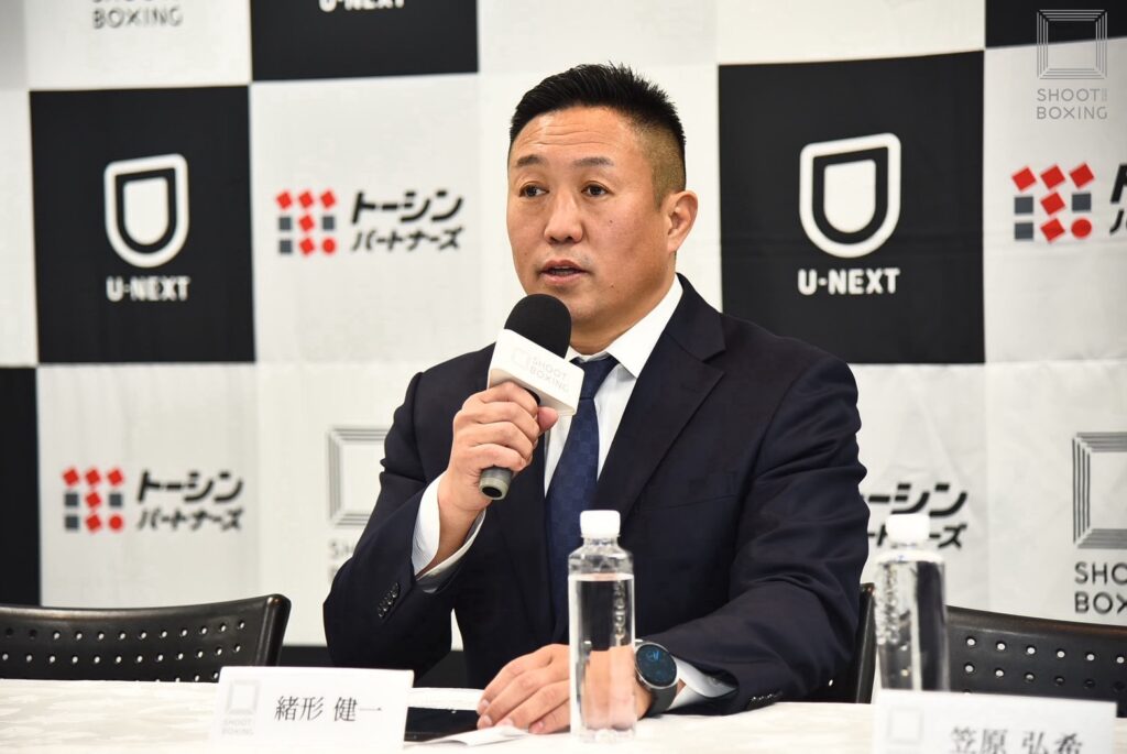 同席した緒形健一代表は「SBは昨年40周年という大きな節目を迎えることができました。これは長年支えてくださったスポンサーの皆様、ファンの皆様、選手そして関係者の皆様、全ての方々のお力のおかげだと本当に心より感謝申し上げます。そして、2026年、私たちは“新章”として、もう一度スタートラインに立ちます。40年間、私たちが大切にしてきたもの。それは武士道の精神です。倒れた相手を攻撃しない、侍は立って戦う。そして打つ、蹴る、投げる、極める。その全てを正面から受け止めて戦う。それがSBの侍スピリットです。この軸はこれからも一切変わりません。ただ、時代は大きく変わっています。選手の夢の形も、格闘技の届け方も、世界とのつながり方も変わってきました。昨年、海人がONEという世界の舞台への挑戦を表明しました。協会として私たちは、この挑戦を全面的にバックアップします。断言します。SBは選手を囲い込む団体ではありません。選手の可能性を広げる団体でありたい。日本で育て、世界へ挑戦させる。そして世界からまた日本の格闘技の価値を高めていく。その循環を作ることが、これからのSBの役割だと確信しています。海人が次の世代にバトンタッチしたいと話したように、この41年目からのSBは新しい世代が主役になる時代に入ります。今日、ここに集まってくれた選手たちこそが、新章のシュートボクシングを戦っていく中心になります。2026年、その第一歩が2月14日の後楽園ホール大会です。40年間続いた団体は多くはありません。しかし、我々は守る40年ではなく、挑戦する40年を選びます。2026年SB新章にぜひご期待ください」とあいさつ。