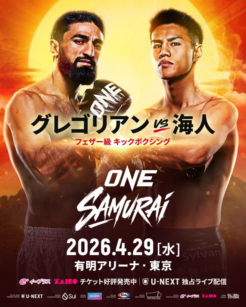 2026年4月29日(水・祝)東京・有明アリーナで開催される『ONE SAMURAI.1』(U-NEXT配信)に、SB世界スーパーウェルター級王者・海人(TEAM FOD)の参戦が発表された。