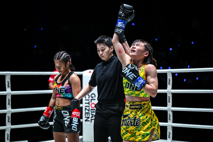 ヒット数の多いMISAKIに対し、前に出続けてインパクトある一撃があったプリヤワン。判定2-1の僅差でMISAKIが勝利しONE2連勝となった。