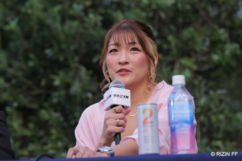 対戦相手は現在調整中であり、記者との質疑応答でキャリアのラストスパートの青写真はあるかと聞かれると、「今プロで19周年目ということで、来年20周年になります。そこで一旦区切りをつけようかなっていうところで、本当に引退するかはまだ分からないですけど、グダグダするのも性に合ってないなと思うので、ここで一発またタイトル獲って引退っていうロードになれば、私の格闘技人生も良かったものだなって言えると思うので、そこまで行きたいなと思います」と語る。
