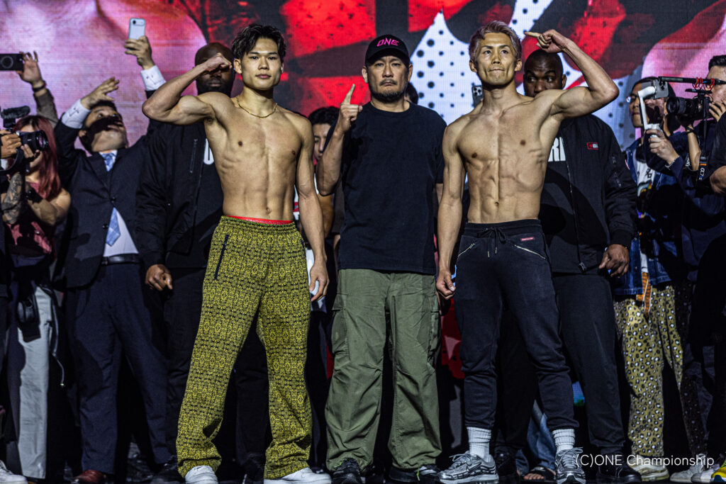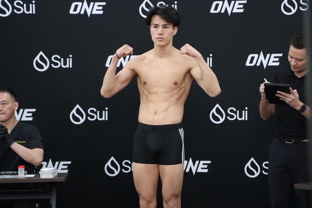 第11試合のONEフェザー級(-70.3kg)キックボクシングでマラット・グレゴリアン(アルメニア)と対戦する前SB世界スーパーウェルター級王者・海人(TEAM F.O.D)は69.58kg、1.0023で計量/ハイドレーションテストをパス。