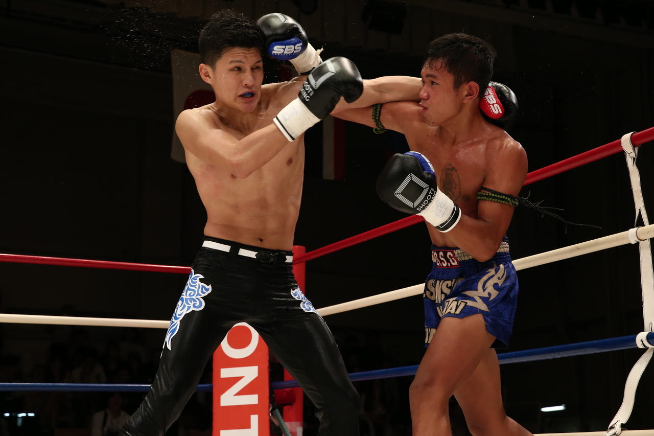 3R、左フック、右ボディと強烈な攻撃を見せる篠原。大桑はバックブローを放ち、カウンターの右フックもヒット。ラスト1分を切るとパンチの打ち合いも。篠原の右ハイがヒットしても大桑は倒れず。先手を取ったのは篠原だったが、ダウンのポイントで大桑が1階級上のトップランカーに勝利した。