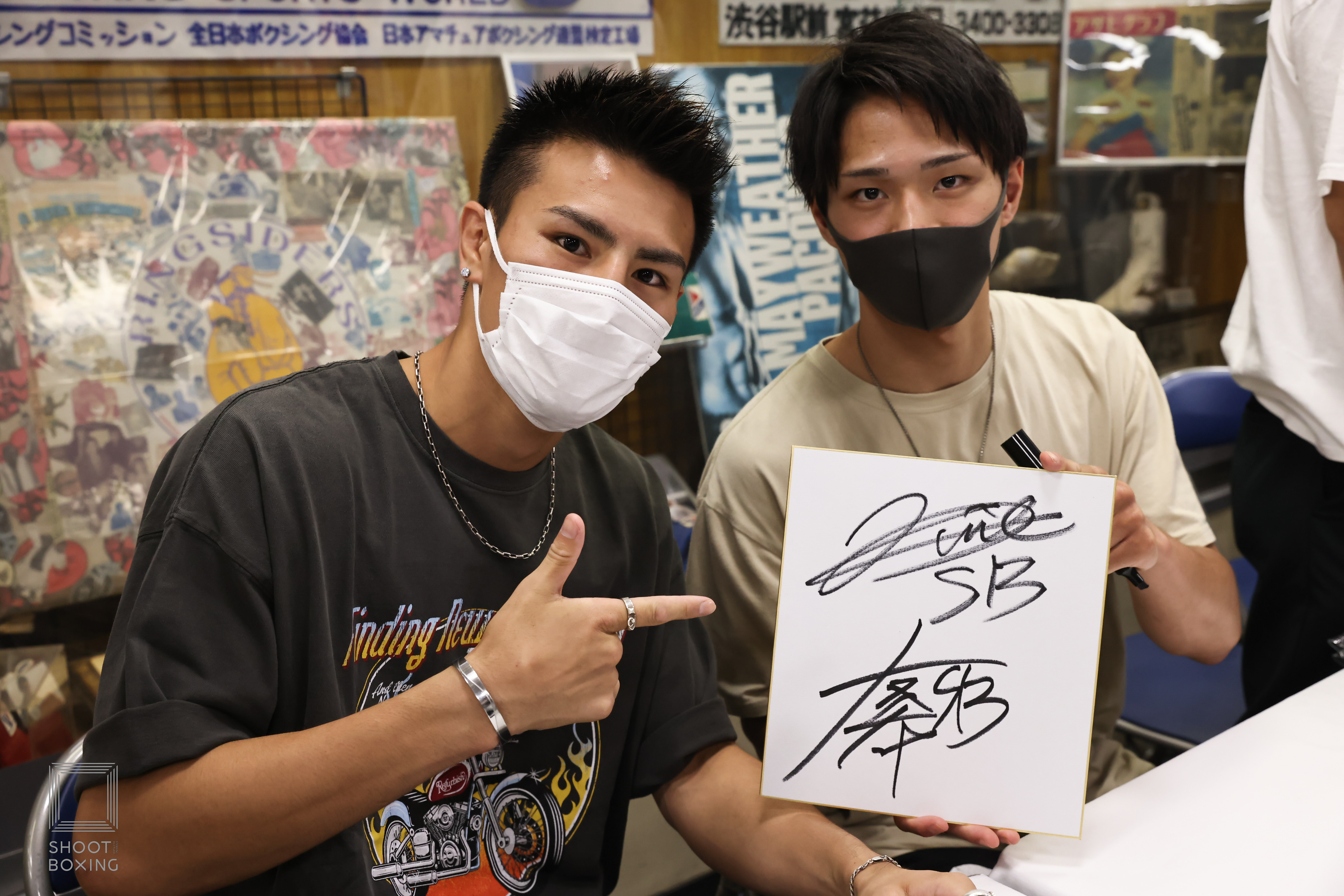 4月大会で西岡蓮太をKOし、SB史上初の3階級制覇を達成した笠原が、現在4連勝中のKNOCK OUT王者バズーカと王者対決を行った。リングインしお互いに睨み合って挑発しヒートアップする中、ゴング! 1R、笠原がプレスをかけ、バズーカは左フック、バックブローを見舞い、随所でヒジを狙う。2R、バズーカのパンチを被弾する笠原が必殺のボディブローを見舞い、バズーカはやや後退。3R、ヒジを狙うバズーカに対し、笠原が左の縦ヒジをカウンターで見舞うと、バズーカは左目上を大きくカット。これでドクターストップとなり、笠原がTKO勝ちした。これで8連勝の笠原は「この前の『THE MATCH』では弟の友希と海人選手が盛り上げてくれてありがとうございます。僕も誰にも負ける気はしません。誰でもかかってこいや! です(笑)。1週間遅かったですけれど、この勝利が父の日のプレゼントってことで。これからも僕がSBをメインで盛り上げていきます」とマイクアピールした。