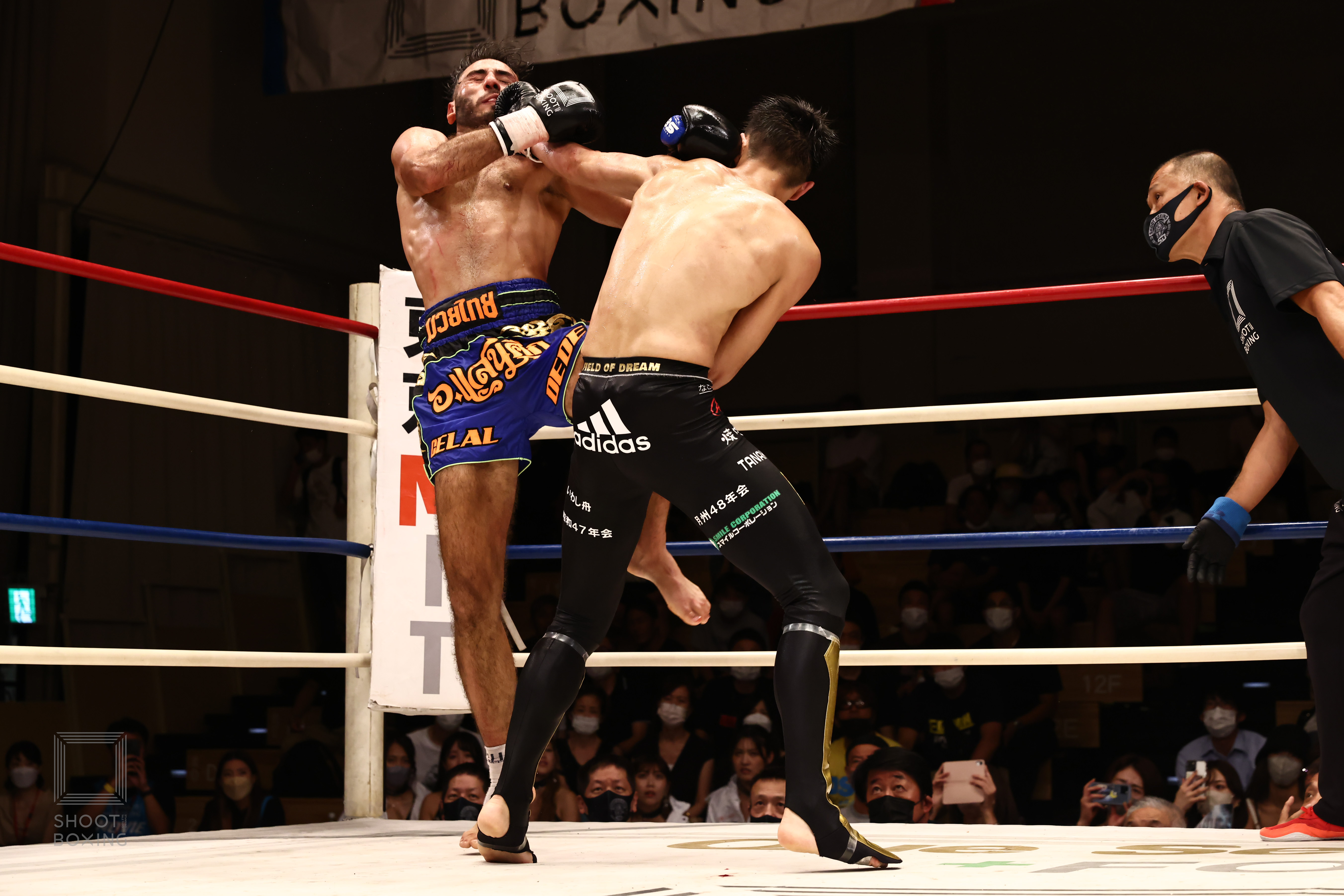 1R、カーフキックを随所で当てる海人だが、カラクァートは前進し右のヒジで海人は鼻血を出す。劣勢の印象の海人は2Rもプレスを強め、カーフキックからパンチ連打につなぐがカラクァートは下がらない。3R、カラクァートはヒジを絡めたコンビネーションで前進し、海人も攻撃を返し本戦はドロー。延長R、カラクァートのヒジで海人は右まぶたの上をカットし流血。追い込まれた海人だは、終盤にパンチ連打で追い込む場面を作りこのラウンドもイーブンに。再延長R、海人はカーフ、ローと右を当てるのに対し、カラクァートはヒジ、パンチで対抗。お互いに譲らない展開となるも、ヒットかずで上回った海人が判定3‐0で勝利した。内容に満足していない海人は「自分でも納得がいってないですし、皆さんもそうだと思います。でも、自分はシュートボクサーが最強やと世界へ向けて証明していきます」とあいさつした。