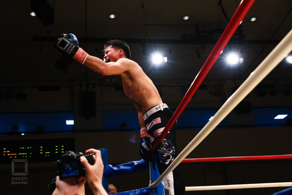 1Rから積極的に前に出る風間。2Rには竹山が首投げでシュートポイントを奪う。すると風間も大腰で投げ返してSPを取り返す。3Rも大腰でSPを追加した風間はスタンディングのフロントチョークでKO勝ち。SB初参戦で打投極を見せて強烈なインパクトを残した。