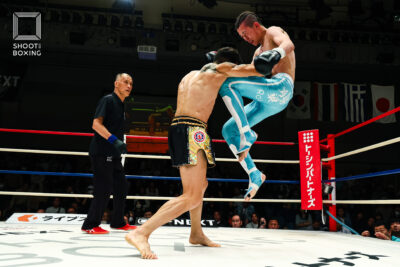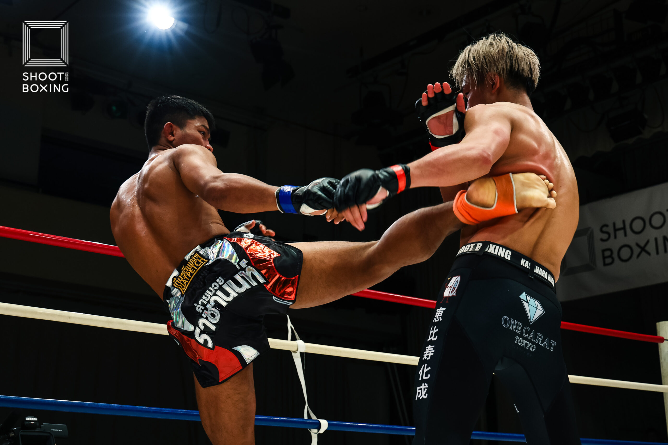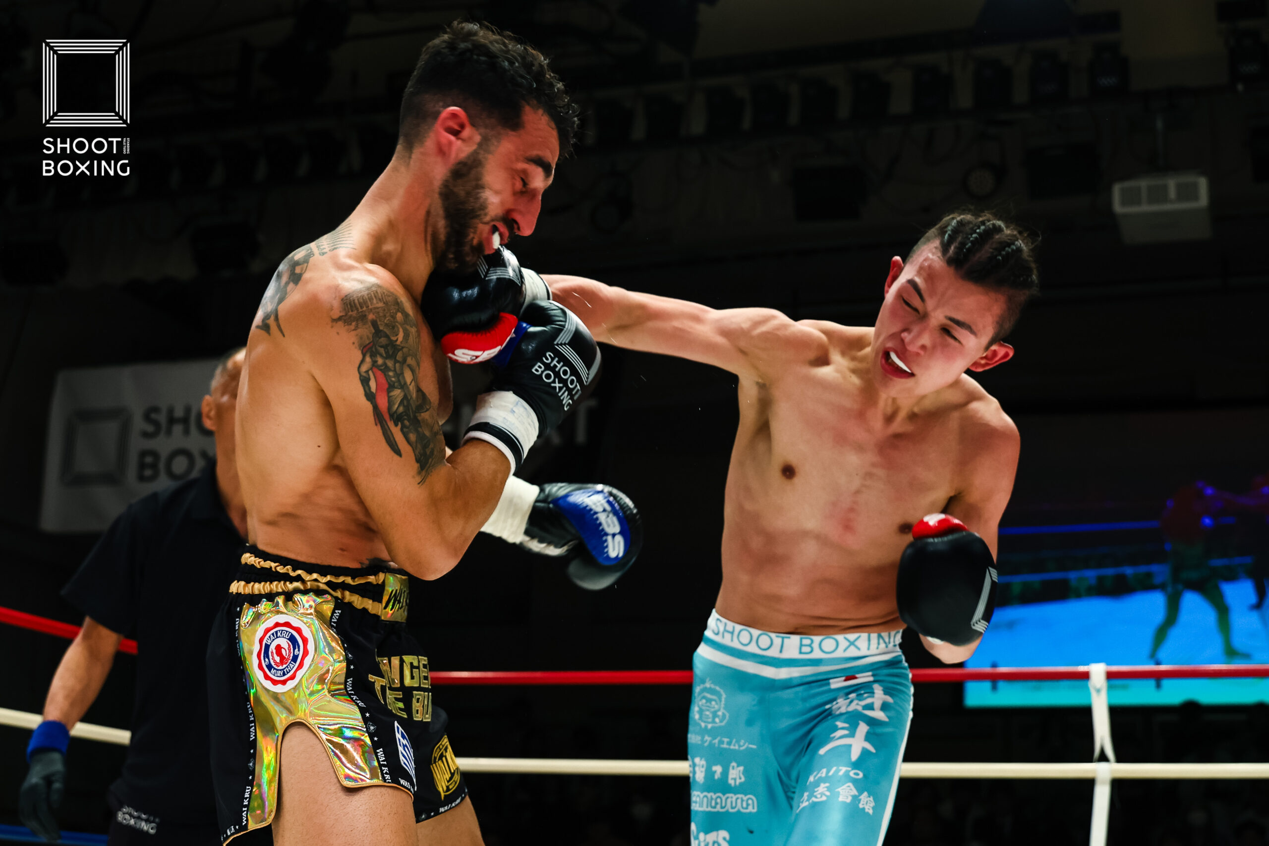 昨年8月の平野凌我戦の後、怪我で試合から遠ざかっていた魁斗が8カ月ぶりの復帰戦、55戦50勝(18KO)5敗の戦績を誇り、現在はタイに活動の拠点を置く超攻撃的ファイターのヤクミスと対戦した。