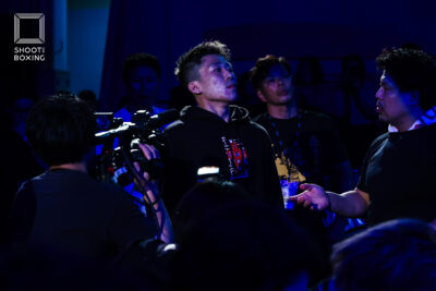 マイクを握った彪太朗は「川上選手と3度目の対決ということで、自分は川上選手に勝ってから8連勝してこのベルトの価値を高めてきたつもりでしたが、やっぱり川上選手は強くて、ハイキックで切れた時はヤバい、負けるかもと思ったんですが、皆さんのおかげで戦い抜くことが出来ました。KOで勝つための練習をしてきましたが、ギリギリの判定になってしまって反省が残る試合ですが、世界一になるために頑張っています。11月のS-cupでフェザー級世界トーナメントが決定しました。自分はもちろん日本代表で出るだろうし、本当の世界一を証明する戦いをしたいと思います。そのために全力で走り抜けます。山田ツインズが世界一になるために頑張ってきたので、その夢を諦めていません。山田ツインズに注目してもらえたら嬉しいです」とアピールした。