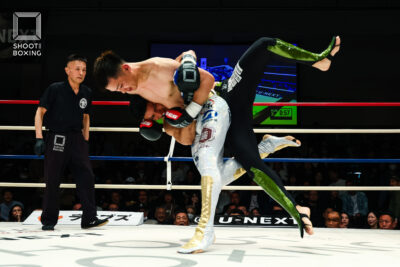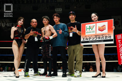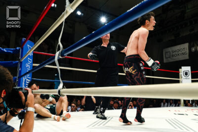 2R、プレスをかける小林に、片山は何度もワンツーを当てていき、ヒットも許さない。3R、距離を詰める小林は追いかけるが、片山は組み付いてはヒザ蹴り、パンチの打ち合いでも一歩も退かない。ランカーの意地を見せる小林だったが、片山が判定勝利で無敗記録を5に伸ばした。