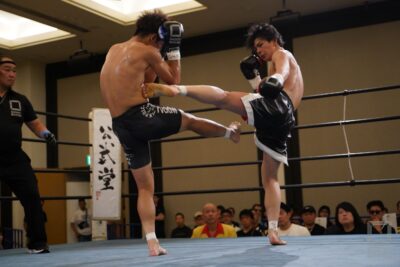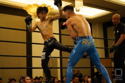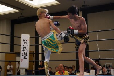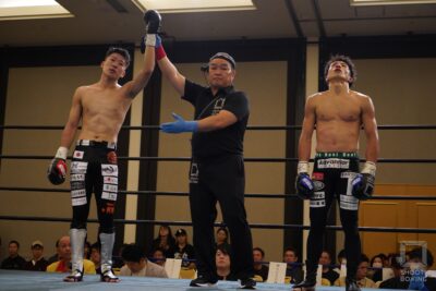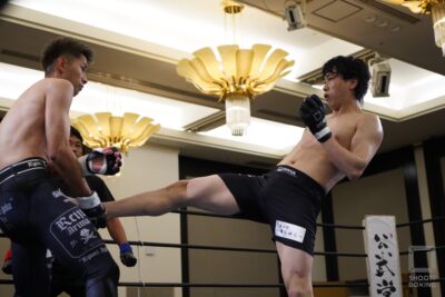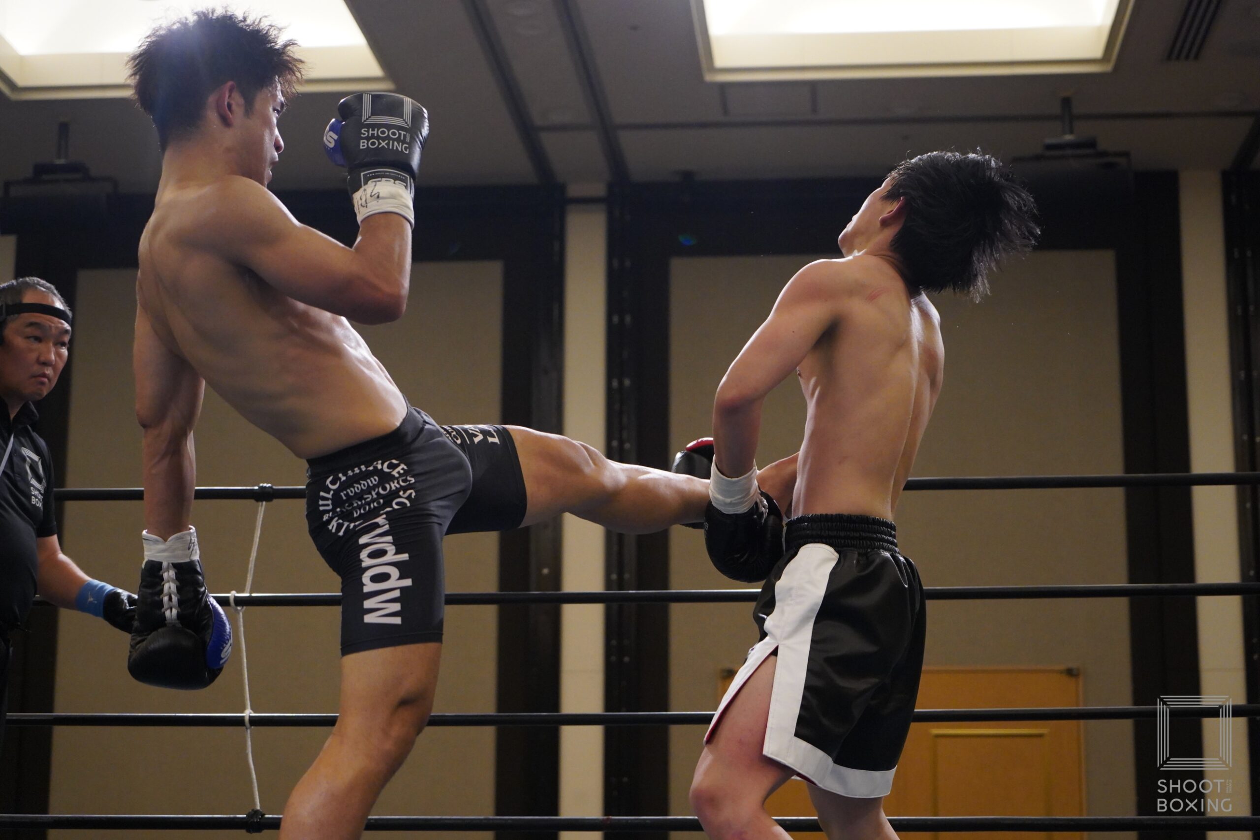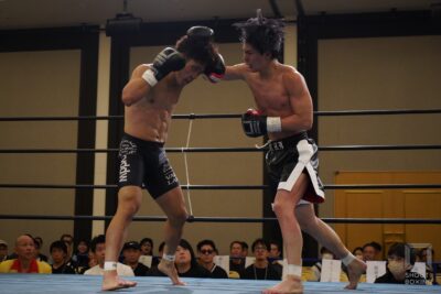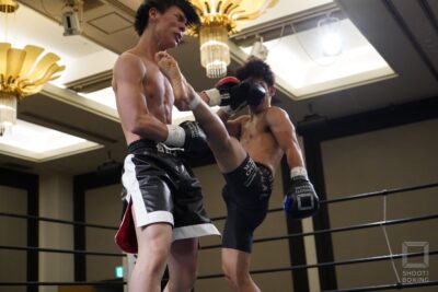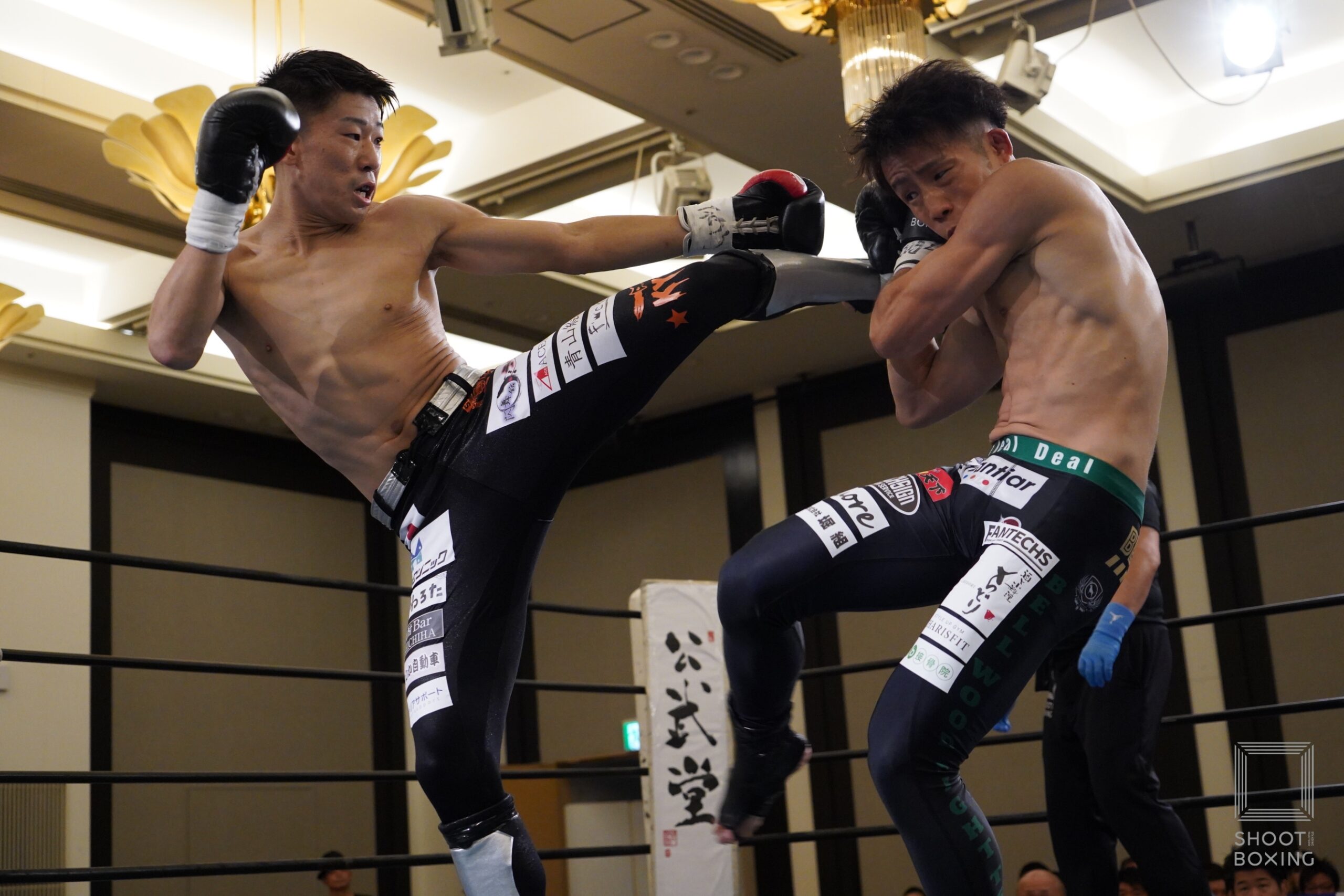 2Rも打ち合いの中で、蓮太が右ハイ。岡本のパンチが当たりはじめて蓮太は鼻血。残り時間僅かのところでもお互いに疲れを見せながらもパンチを交錯させた。