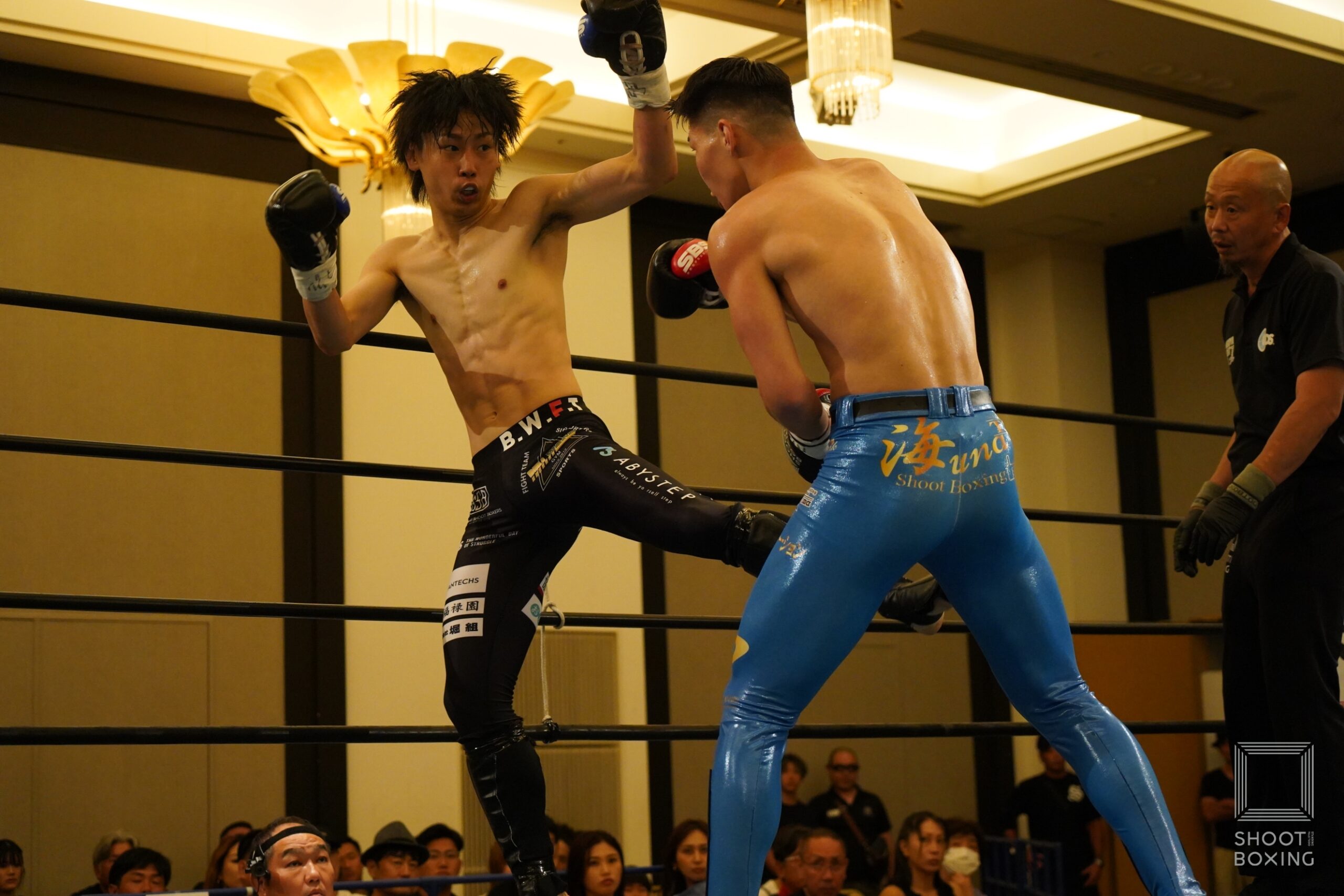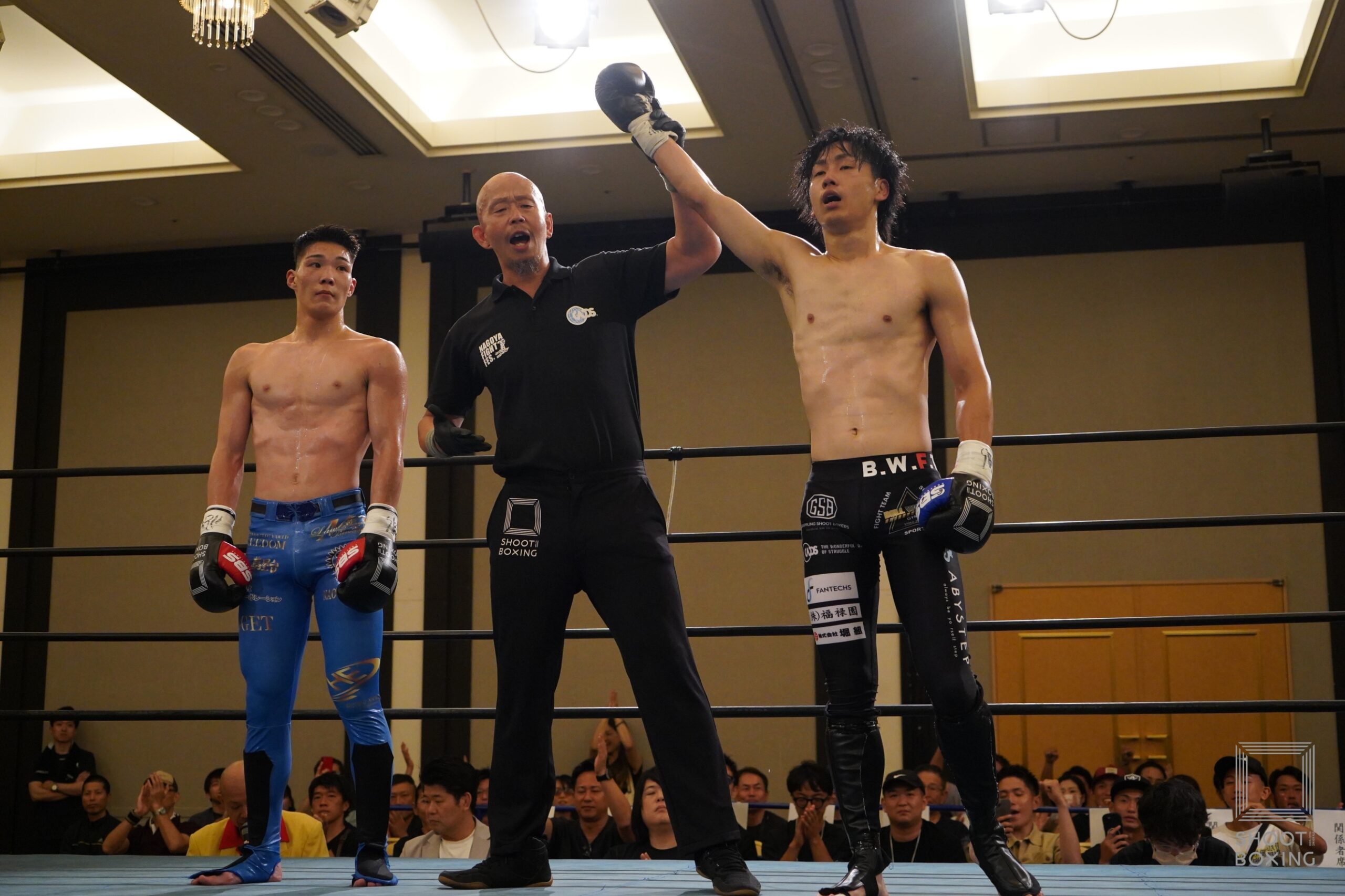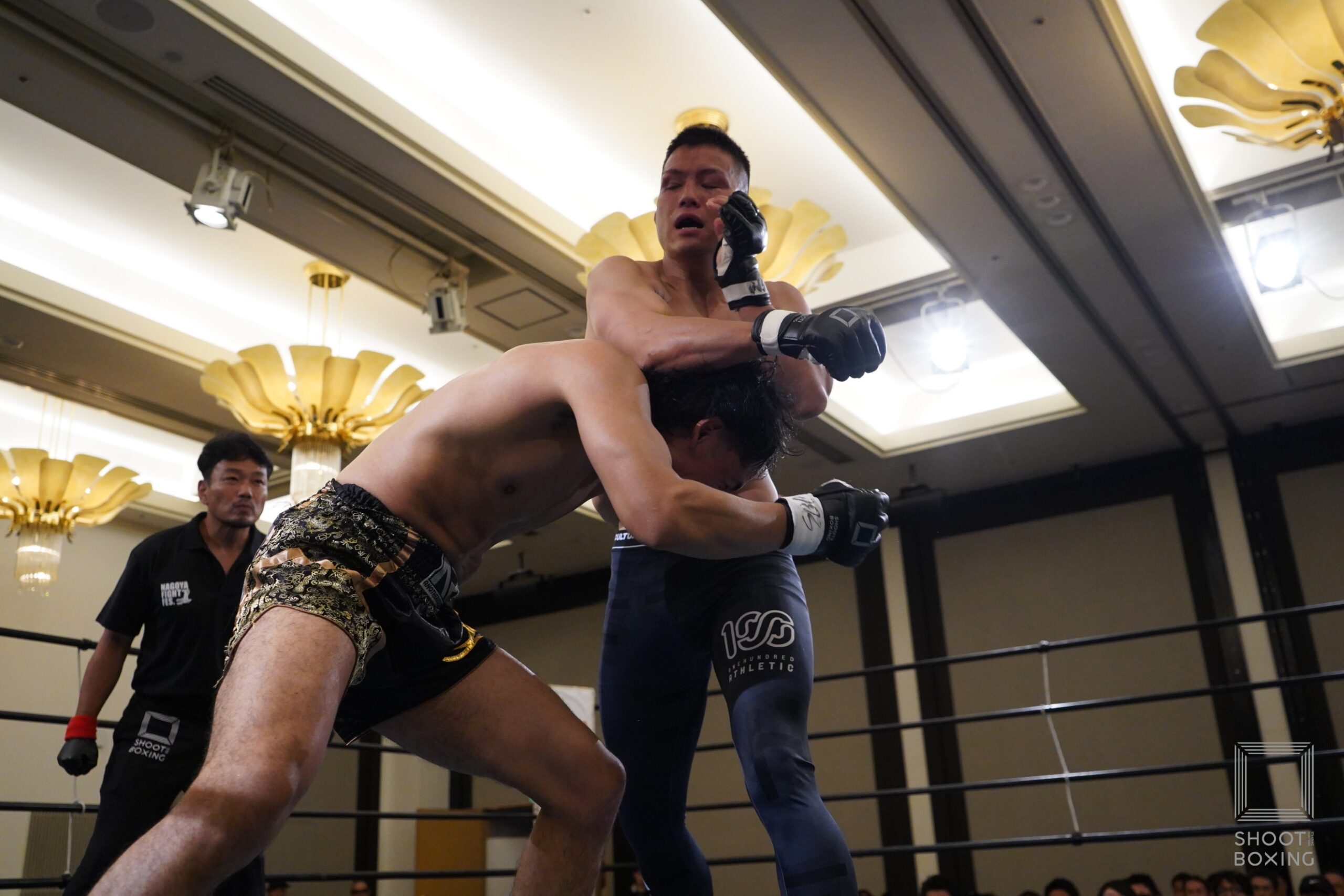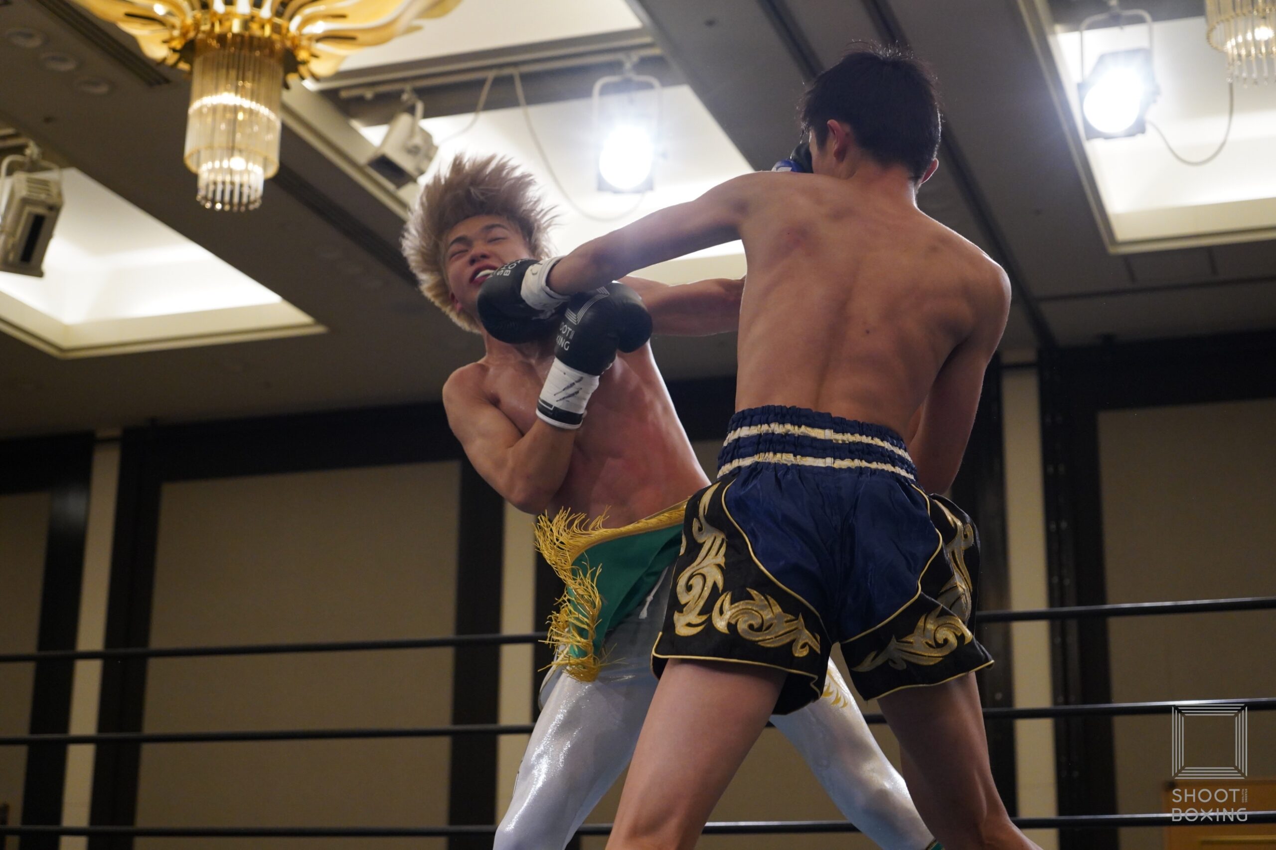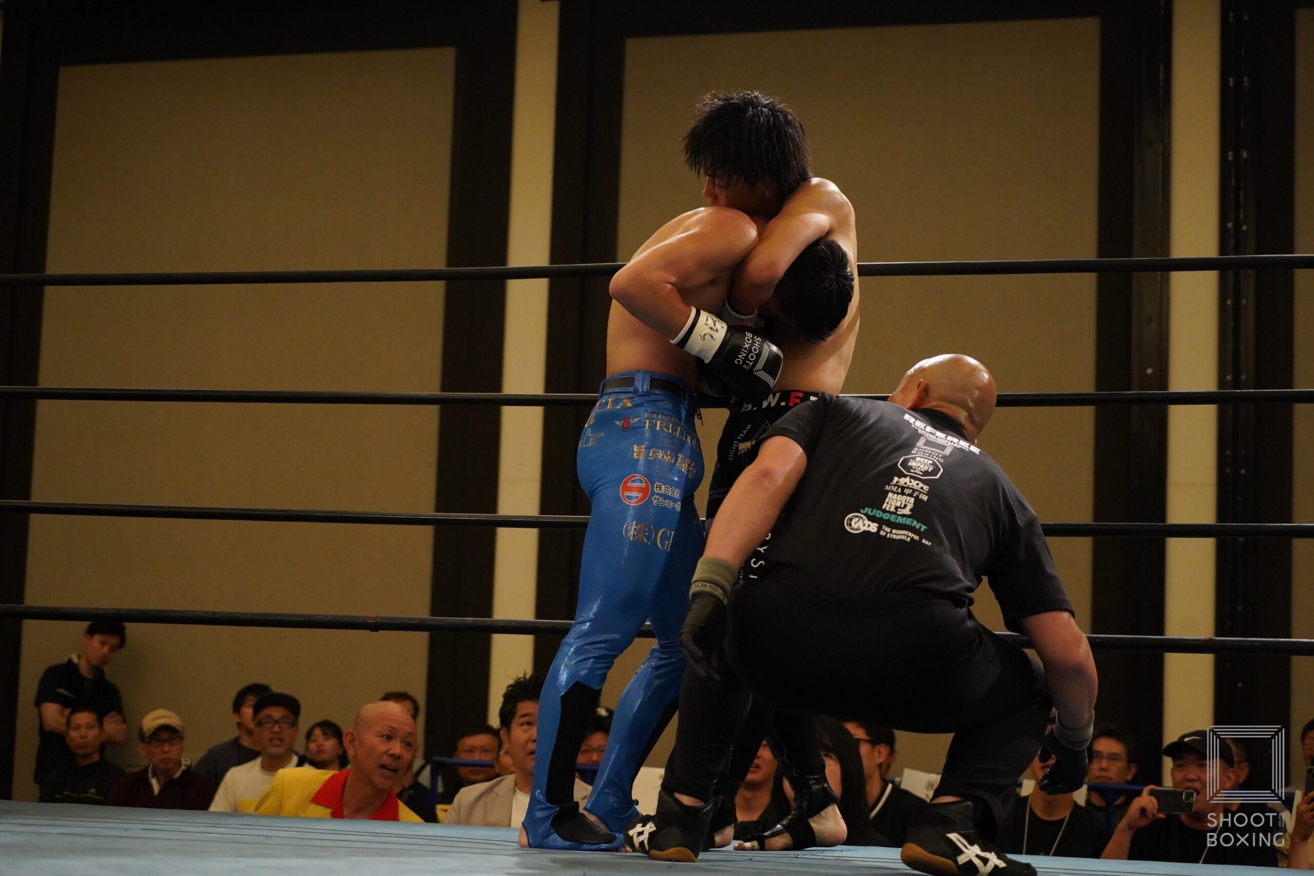 1R、組み付いて投げ狙いの宜野座に、真言は右ストレート。大振りのパンチを振り回す宜野座は前に出続け、真言が冷静にパンチを返す。2R、プレスを強める真言が左インロー、ワンツー、宜野座は手数が減るもののパンチで応戦する。3R、ワンツーで前に出る真言に、宜野座は下がりながらもワンツー。宜野座は胴タックルを仕掛けて投げるもノーシュートに。最後に打ち合ったがお互いに決定打はなし。宜野座が判定勝ちした。