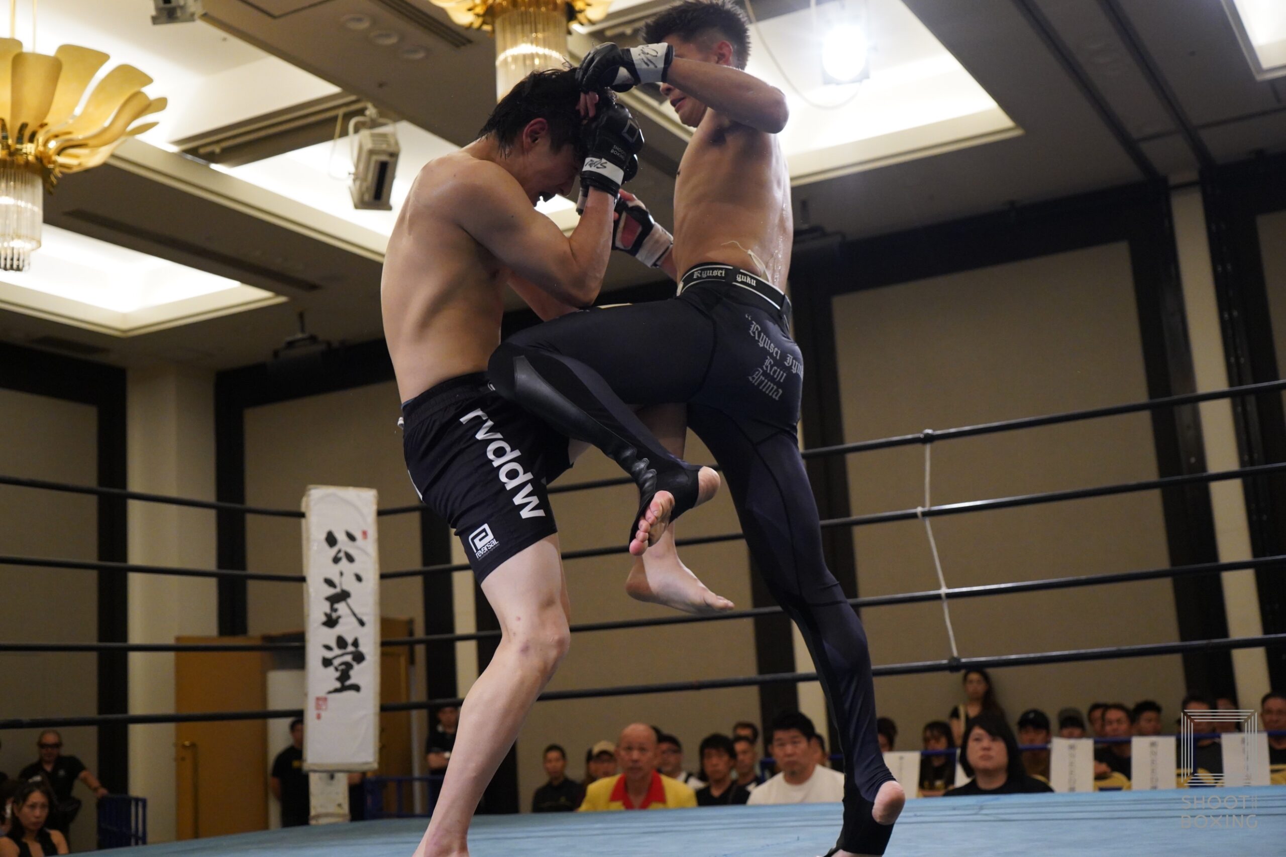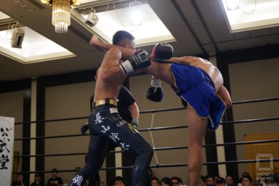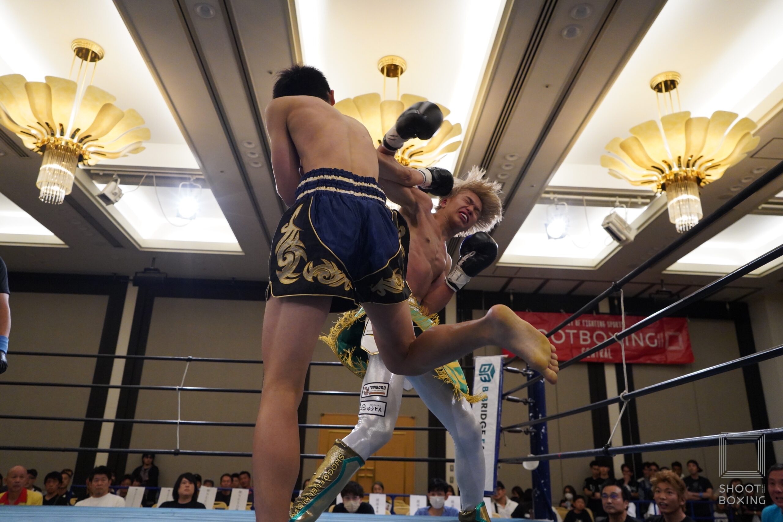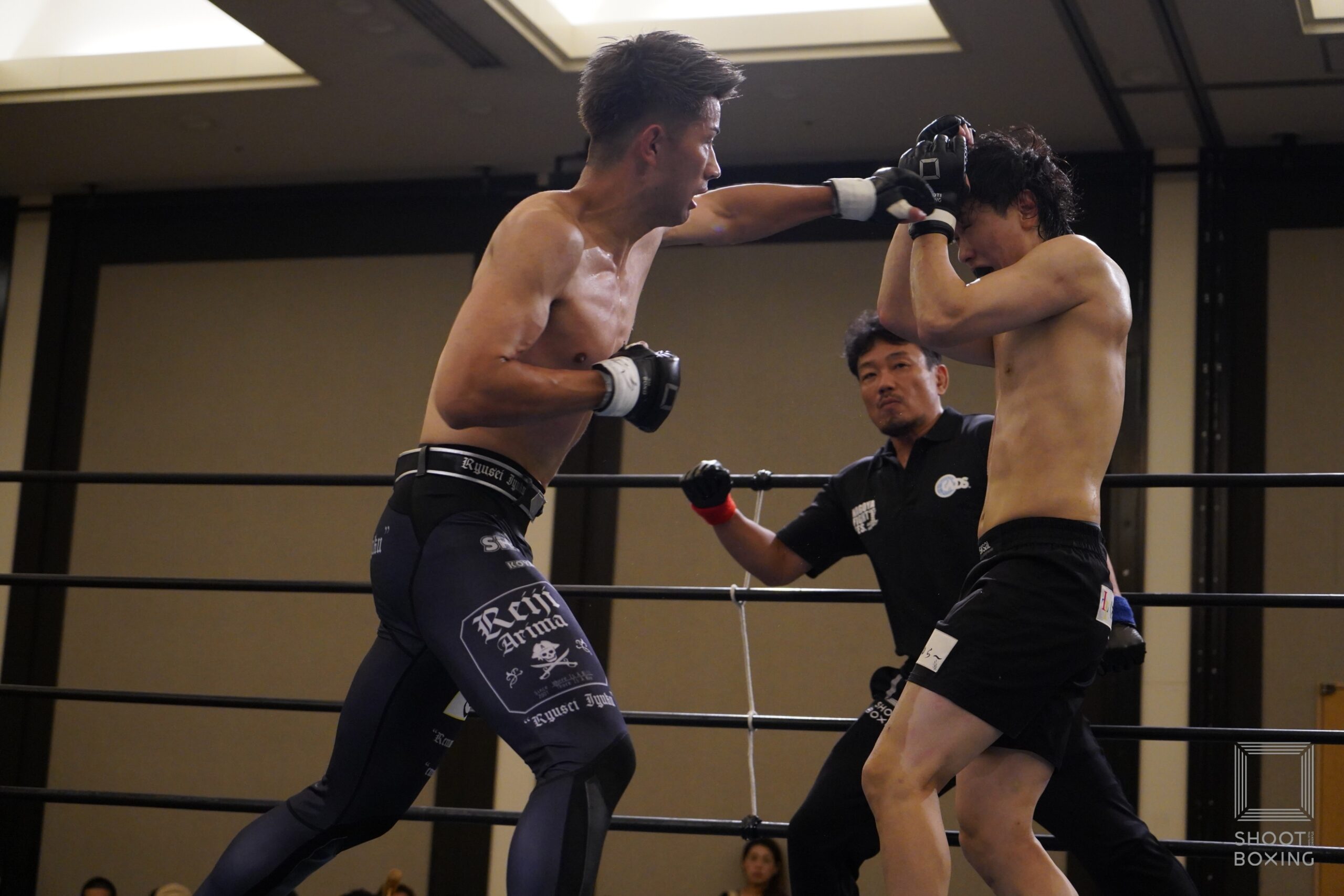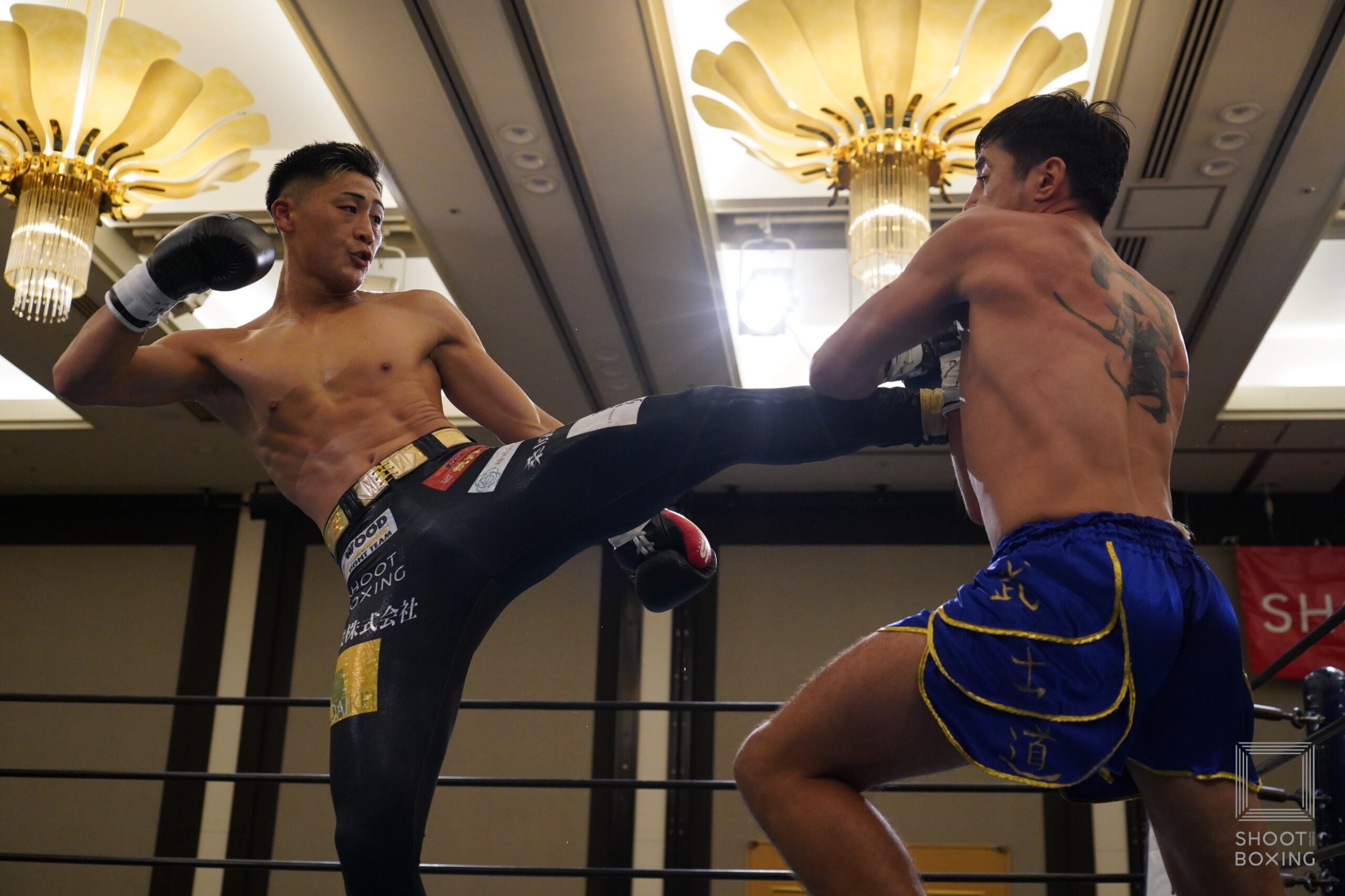 1R、組み付いて投げ狙いの宜野座に、真言は右ストレート。大振りのパンチを振り回す宜野座は前に出続け、真言が冷静にパンチを返す。2R、プレスを強める真言が左インロー、ワンツー、宜野座は手数が減るもののパンチで応戦する。3R、ワンツーで前に出る真言に、宜野座は下がりながらもワンツー。宜野座は胴タックルを仕掛けて投げるもノーシュートに。最後に打ち合ったがお互いに決定打はなし。宜野座が判定勝ちした。