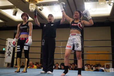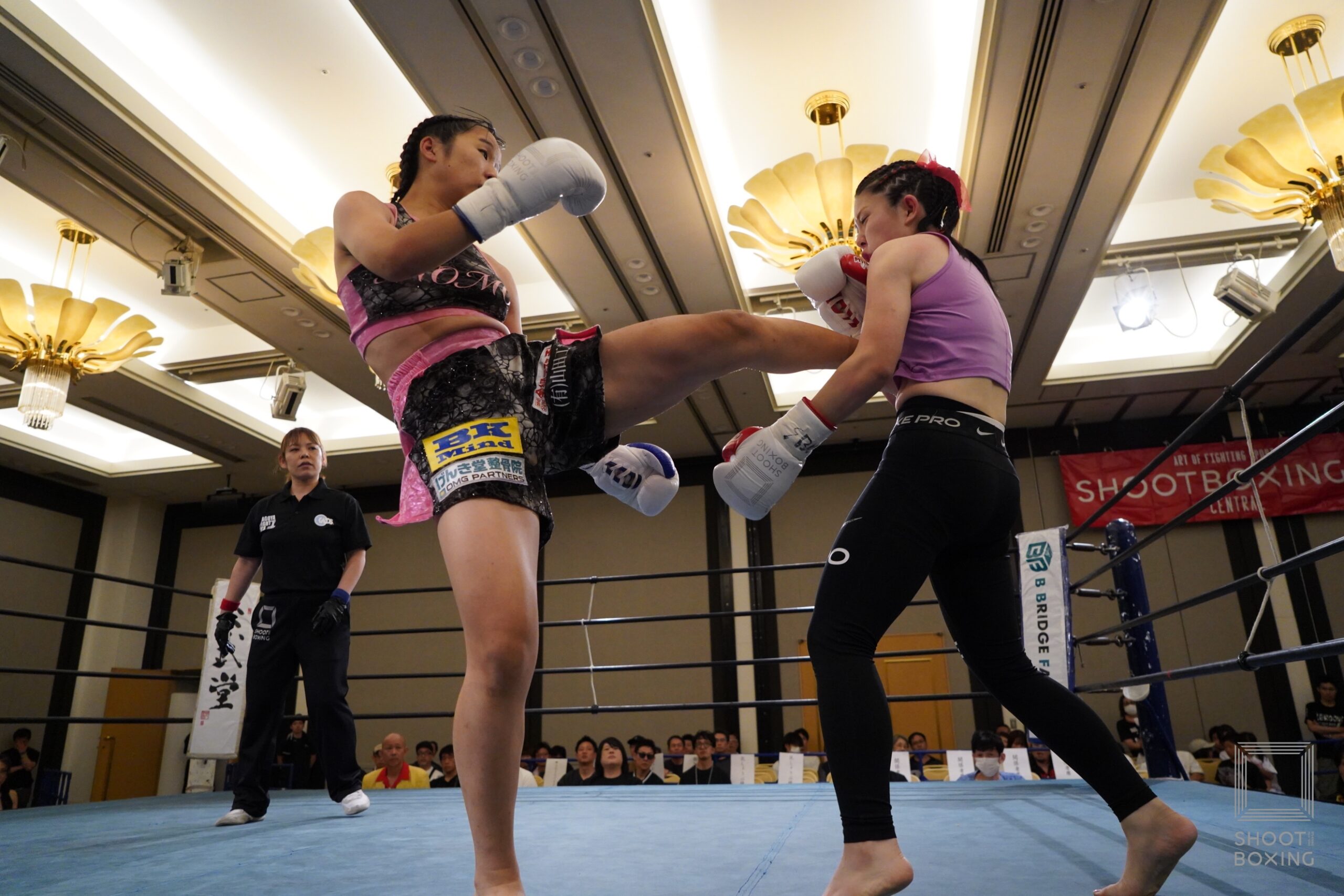 1R、左ミドルのTSUMIKIに対し、矢代がパンチ連打で追い込む場面を作り、右ハイもクリーンヒット。2Rも右ハイをヒットさせる矢代はパンチ連打、TSUMIKIもパンチで応戦するが押されてしまう。終盤にはTSUMIKIが左ハイ、パンチ連打も止まらない。3R、TSUMIKIもパンチで応戦し、パンチ連打の矢代は右ハイ。最後まで激しく打ち合ったところで終了。