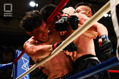 延長R、お互いに疲れを見せる中、パンチ連打の高橋に対し、風間が終了間際に首投げを決めてシュートポイント奪取! これが決定的となり、風間が判定で接戦を制した。
