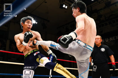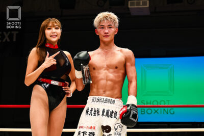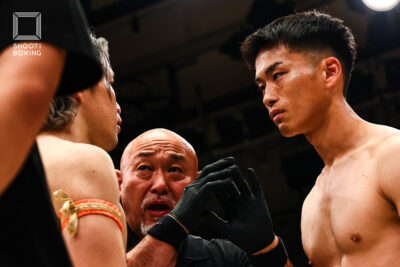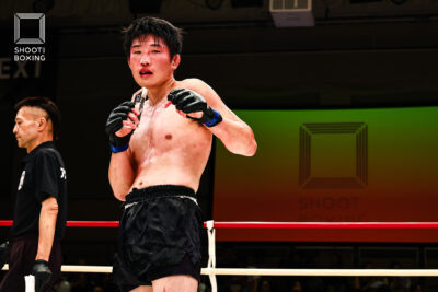 2R、組みにくるテウンに対し、彪太朗は一本背負いでシュートポイント奪取。彪太朗は手数を出していくが、テウンは耐える。3R、パンチを当てる彪太朗に、テウンは右ミドルで対抗。最後まで手数で前に出る彪太朗が大差を付けて判定勝ちした。