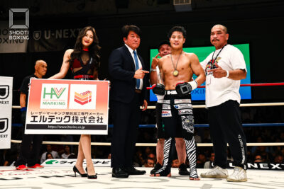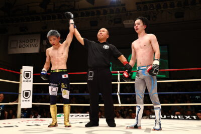2Rも手数の落ちない虎矢太がペップンソンを追い詰めていく展開が続く。3R、虎矢太が左右のストレートをヒットさせるものの。ペップンソンは倒れない。虎矢太はフロントチョーク、左右ボディ連打と最後まで手数を出したが期間切れ。ペップンソンを仕留めきれなかったが、虎矢太が判定勝ちを収めた。