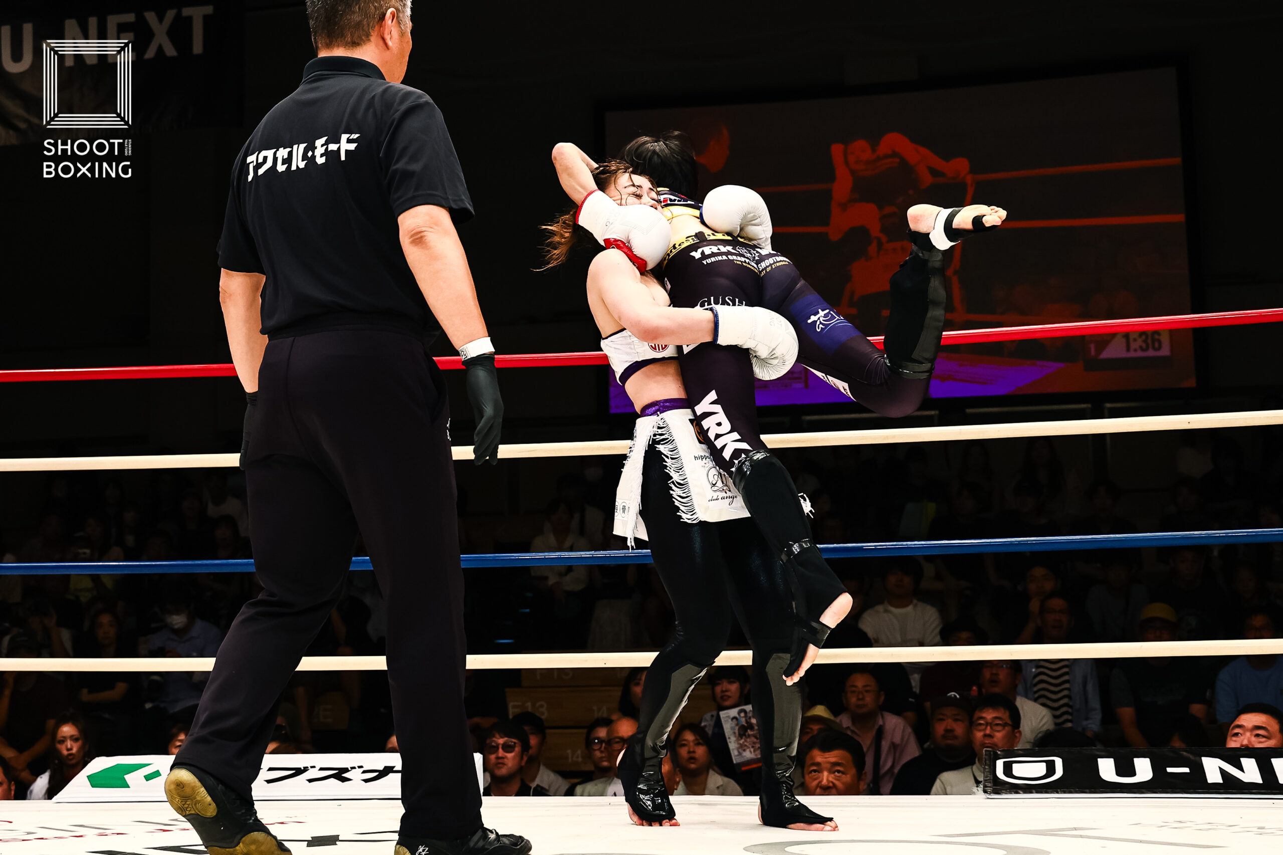 アマチュアムエタイ世界大会で3度ベルトを獲得しているベテランのユリカと、6戦目の新鋭・坂本の一戦。
